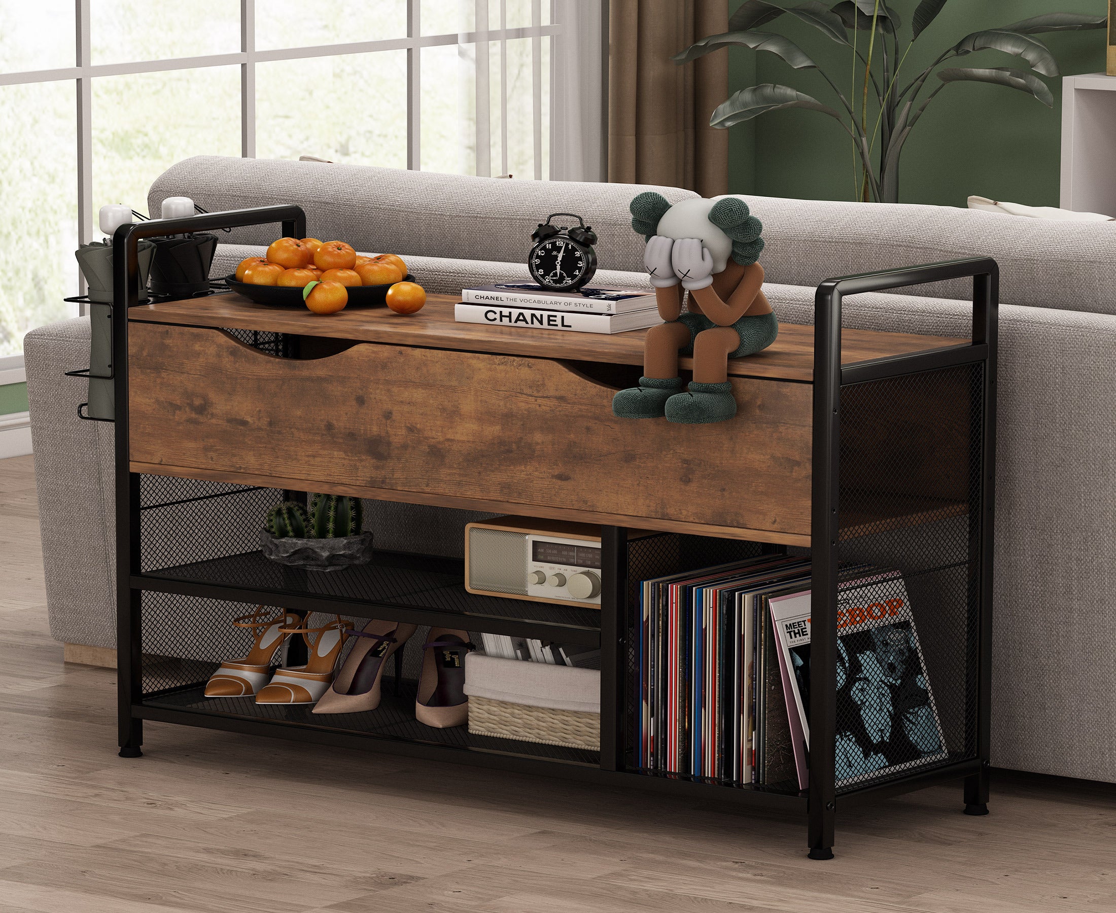 - [ Pneumatic Lifting Rod ] This entryway organizer features a pneumatic lifting rod, making it more sturdy and durable compared to conventional styles. When you finish placing items and want to close it, simply push down and it will easily closed without the loud noise of traditional styles. Plus, we have added EVA protective strips to minimize noise even further.