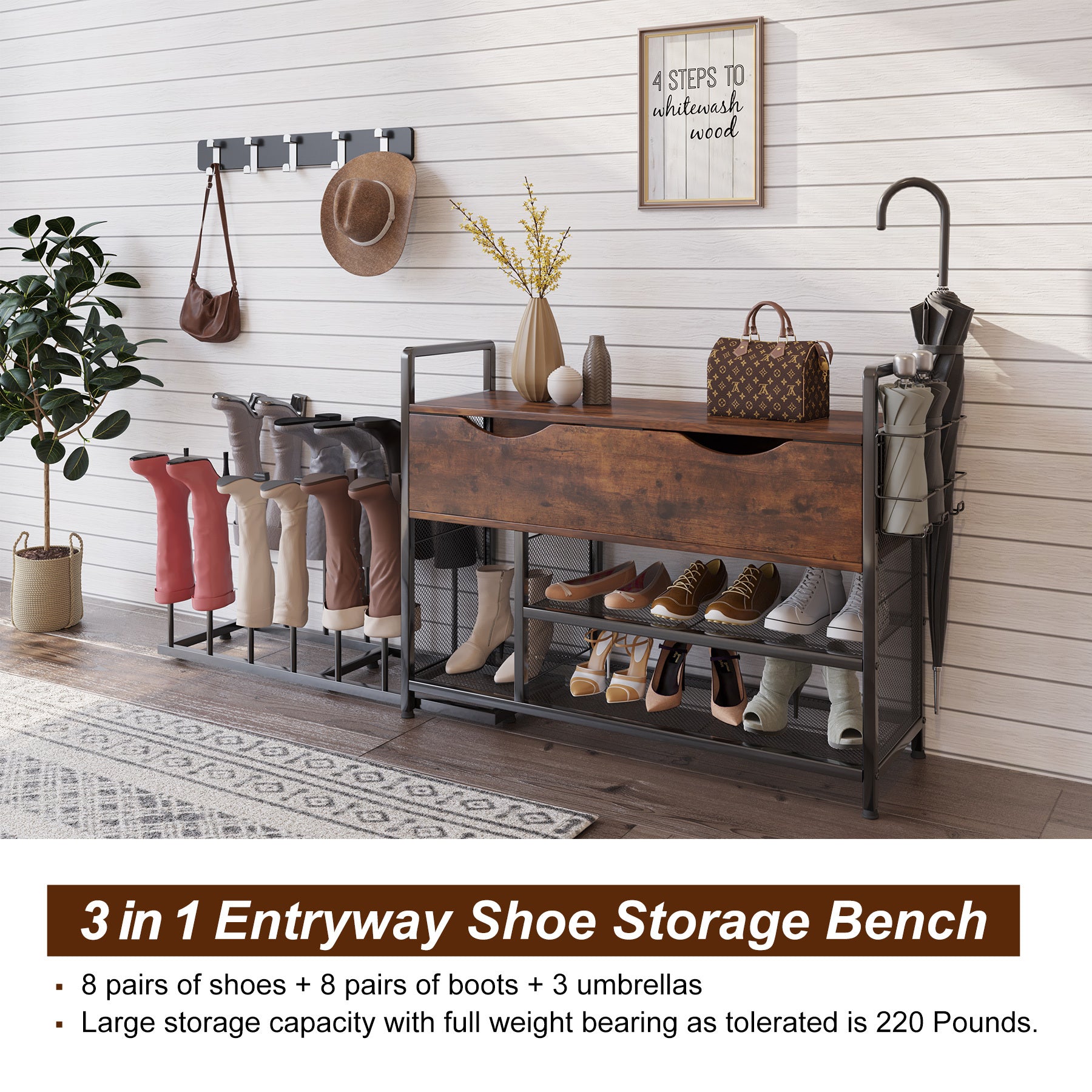 - [ 3-in-1 Entryway Organizer ] The kit includes a lift top shoe bench, boot rack, and umbrella holder. It can be used together or separately, allowing you to customize it according to your needs and space. It helps keep everything organized and convenient for your daily outings.