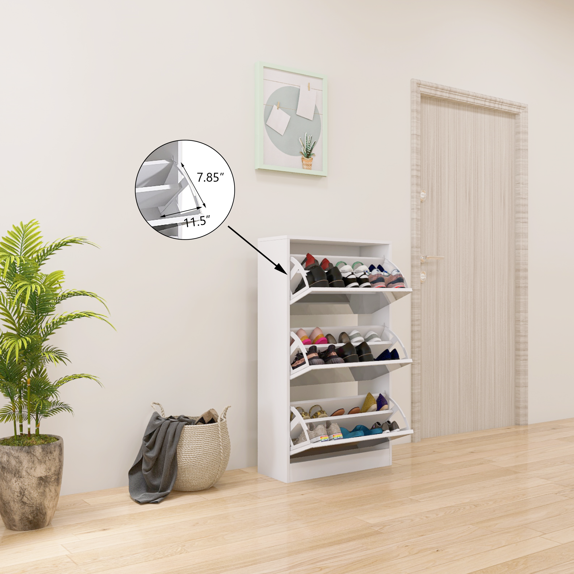 - Keeps shoes organized and easily accessible.