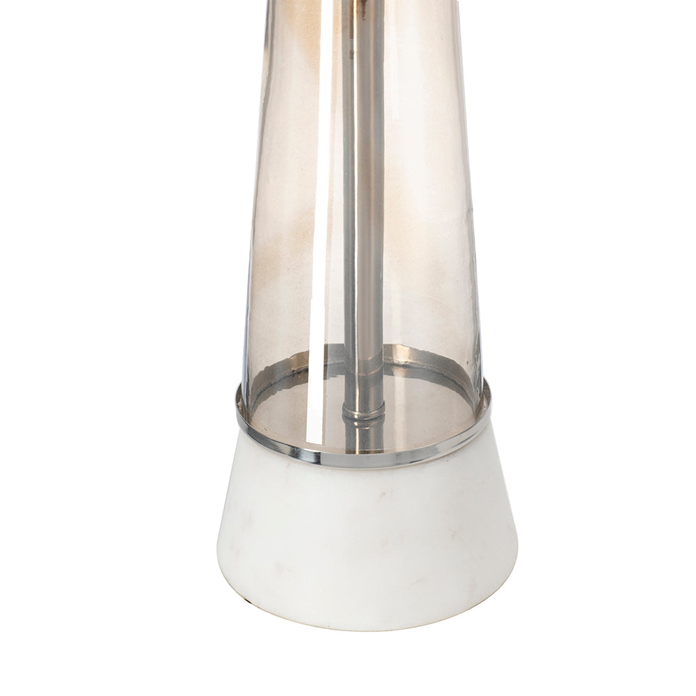D15x30.2' White and Bronze Marble Table Lamp with Glass Cylinder (Lamp Shade Assembly Required)