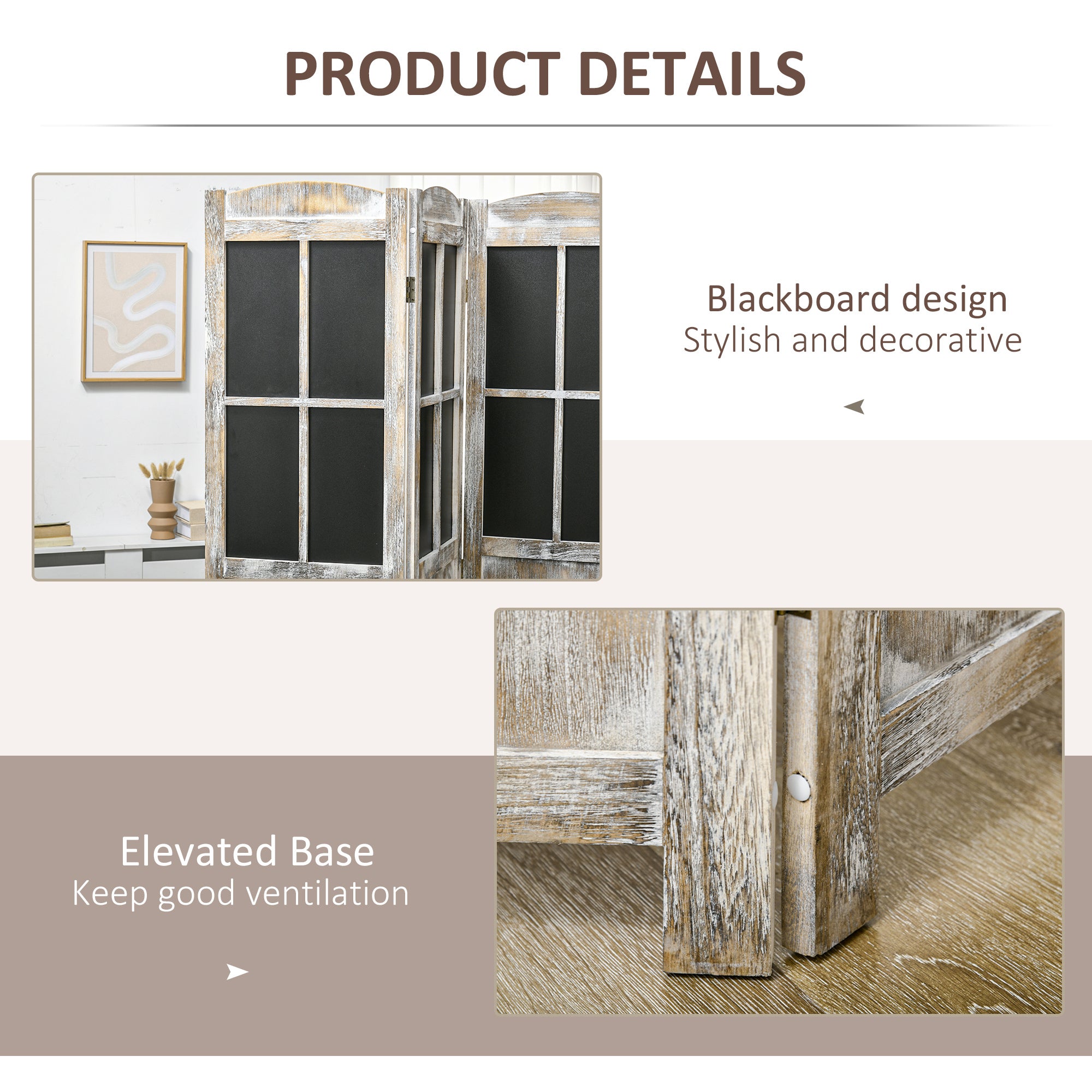 HOMCOM 4-Panel Room Divider – 5.6' Tall Farmhouse Style Folding Privacy Screen with Black Boards, Hinged Freestanding Partition Wall for Home & Office, Natural Wood