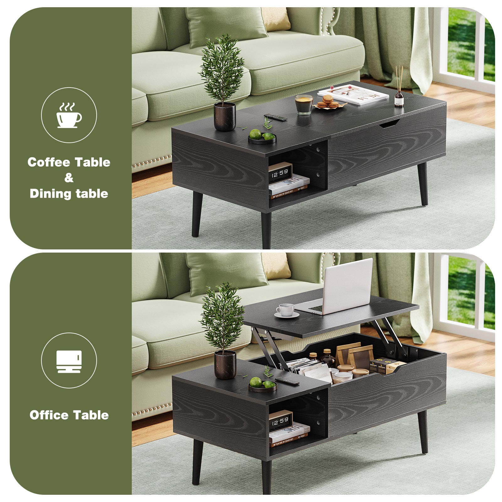 Sweetcrispy Lift Top Coffee Storage Wood Tables with Hidden Compartment Small Dining Desk for Home Living Room Office