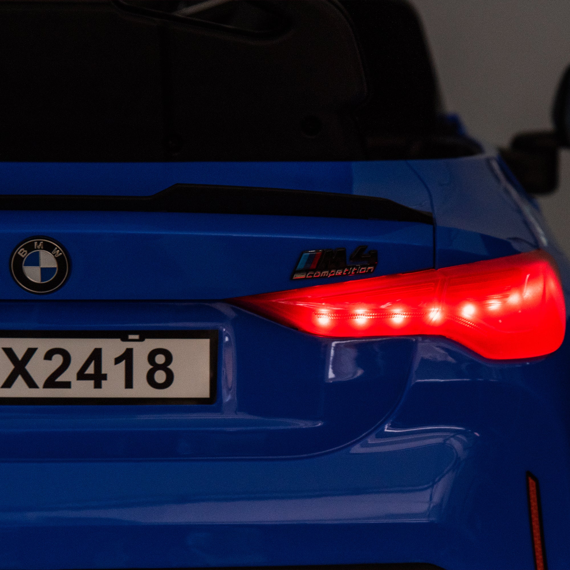 BMW M4 12v Kids ride on toy car 2.4G W/Parents Remote Control,Three speed adjustable,Power display, USB,MP3 ,Bluetooth,LED light,story,A handle with wheels and a pull, easy to carry