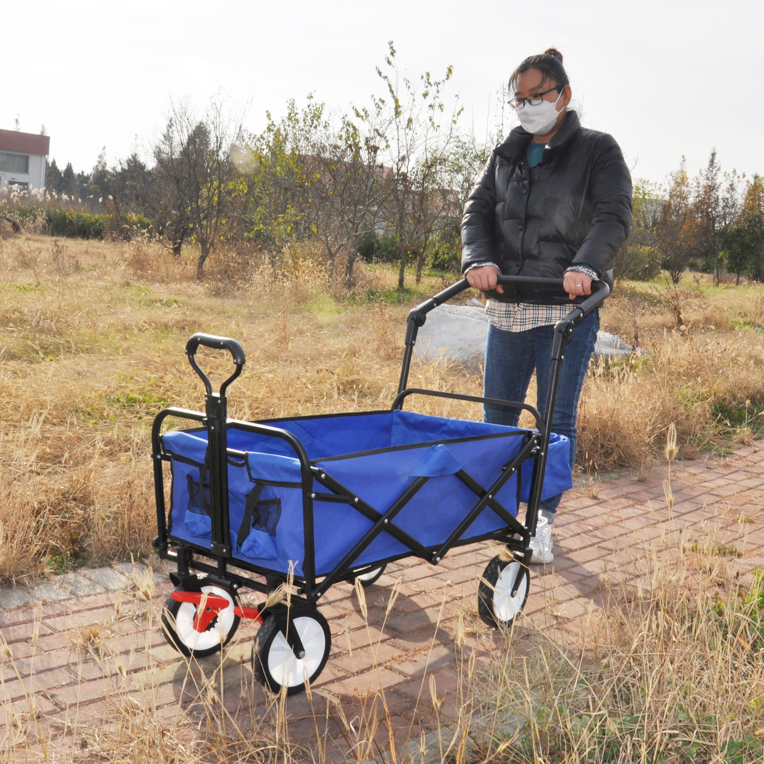 folding wagon Collapsible Outdoor Utility Wagon, Heavy Duty Folding Garden Portable Hand Cart, Drink Holder, Adjustable Handles