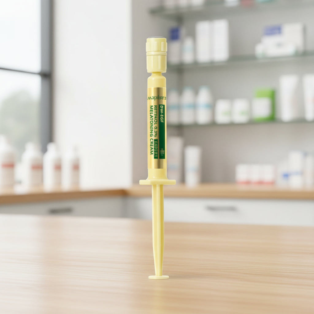 Experience the powerful anti-aging and brightening effects of the Easydew DW-EGF Retinol 0.3% Melatoning Cream 1ml. This highly functional cream combines three potent ingredients: repairing DW-EGF (Epidermal Growth Factor), concentrated anti-aging Retinol 0.3%, and a Melatoning complex for pigmentation control.