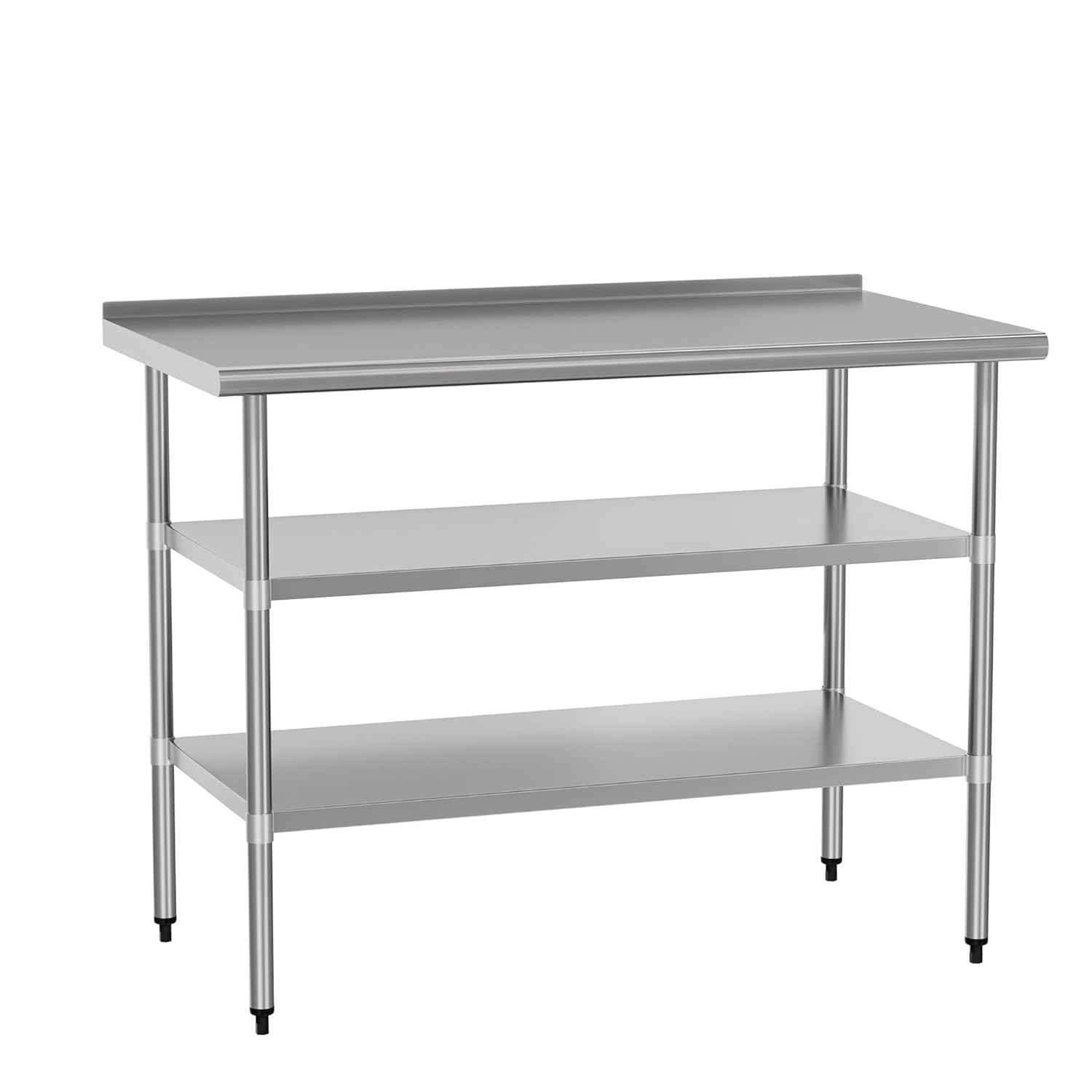 • Heavy-Duty Worktable: Measuring 48x24x34 inches, the stainless steel kitchen table provides a spacious workspace and 2 undershelves. Can support up to 480 lbs on the tabletop and 380 lbs per undershelf, accommodating various storage needs