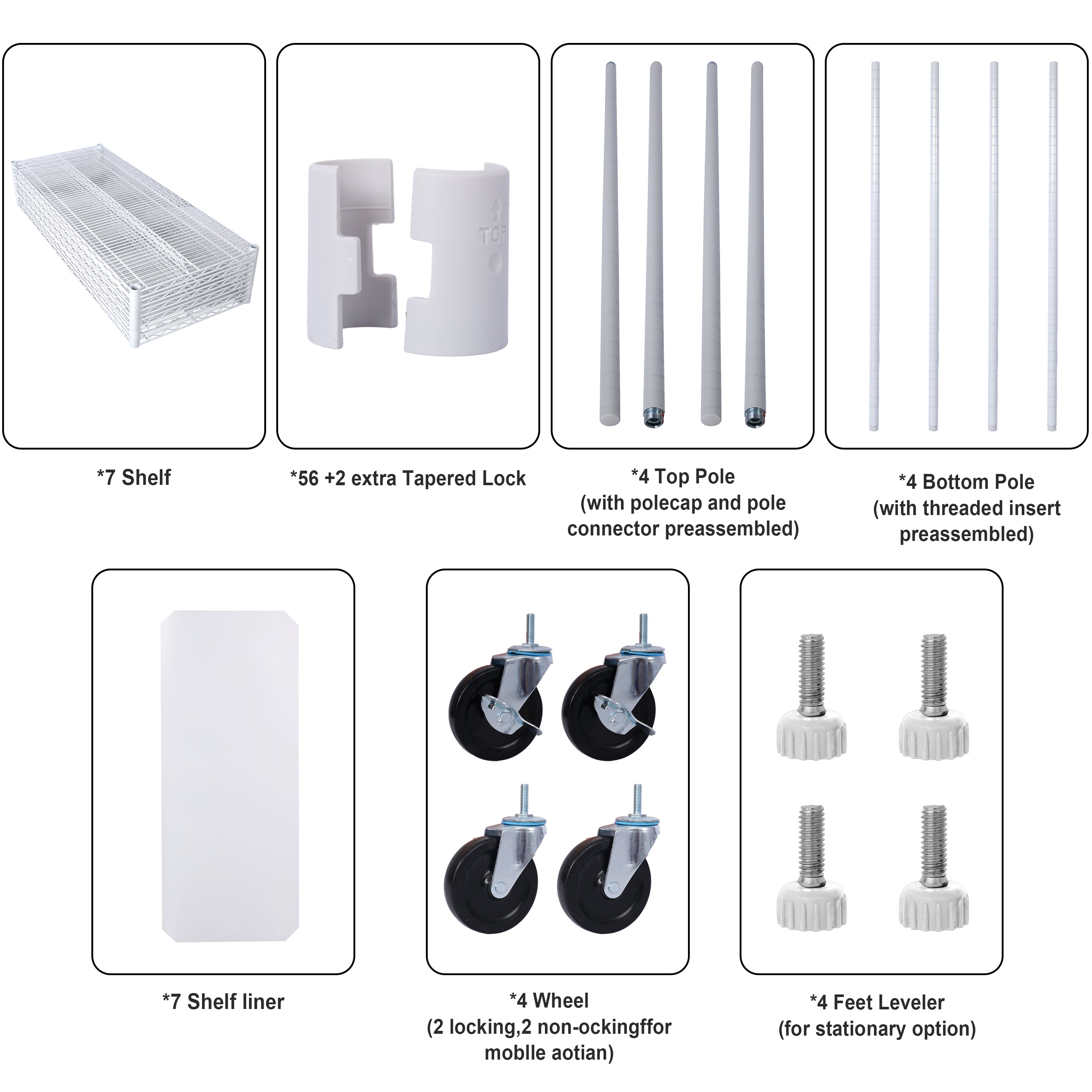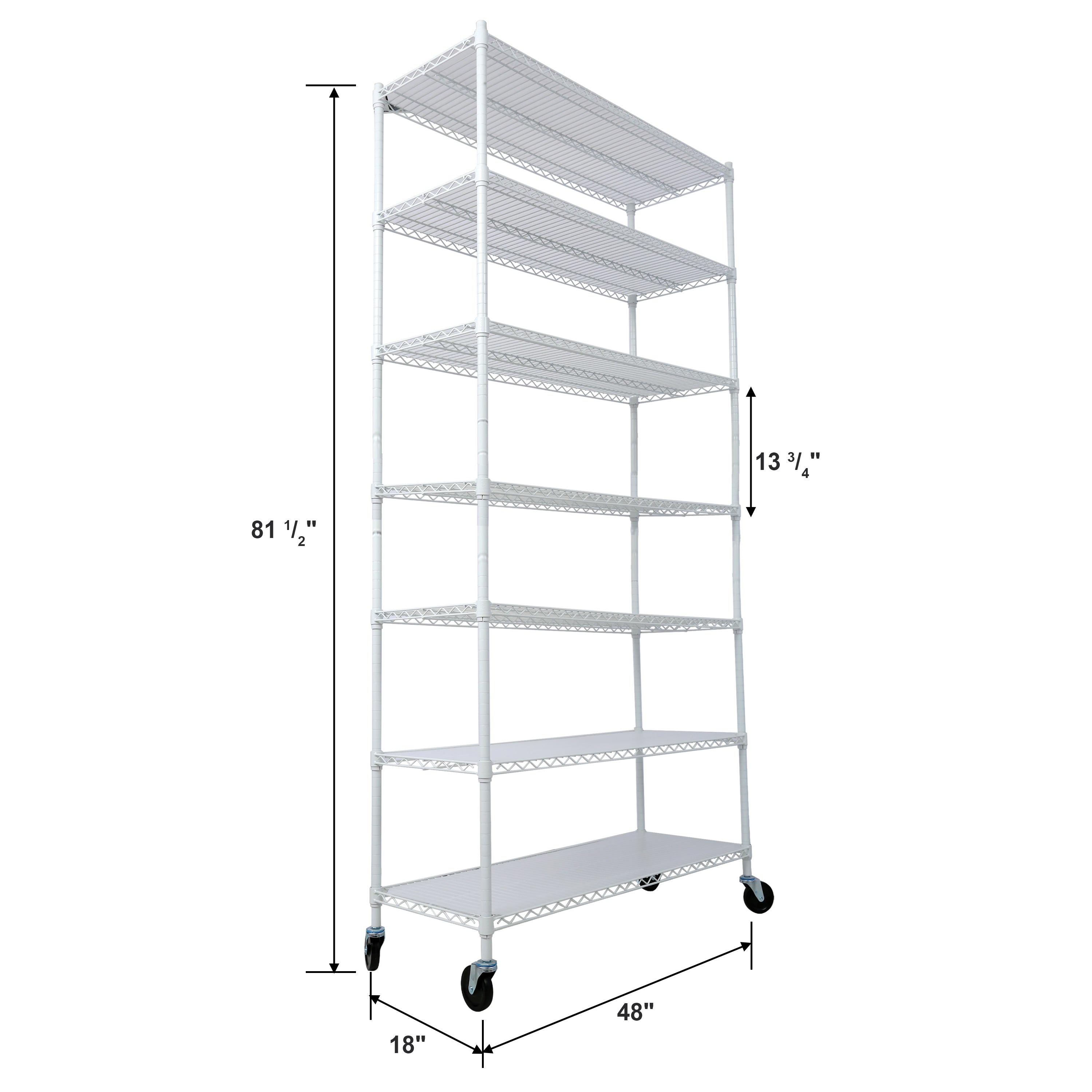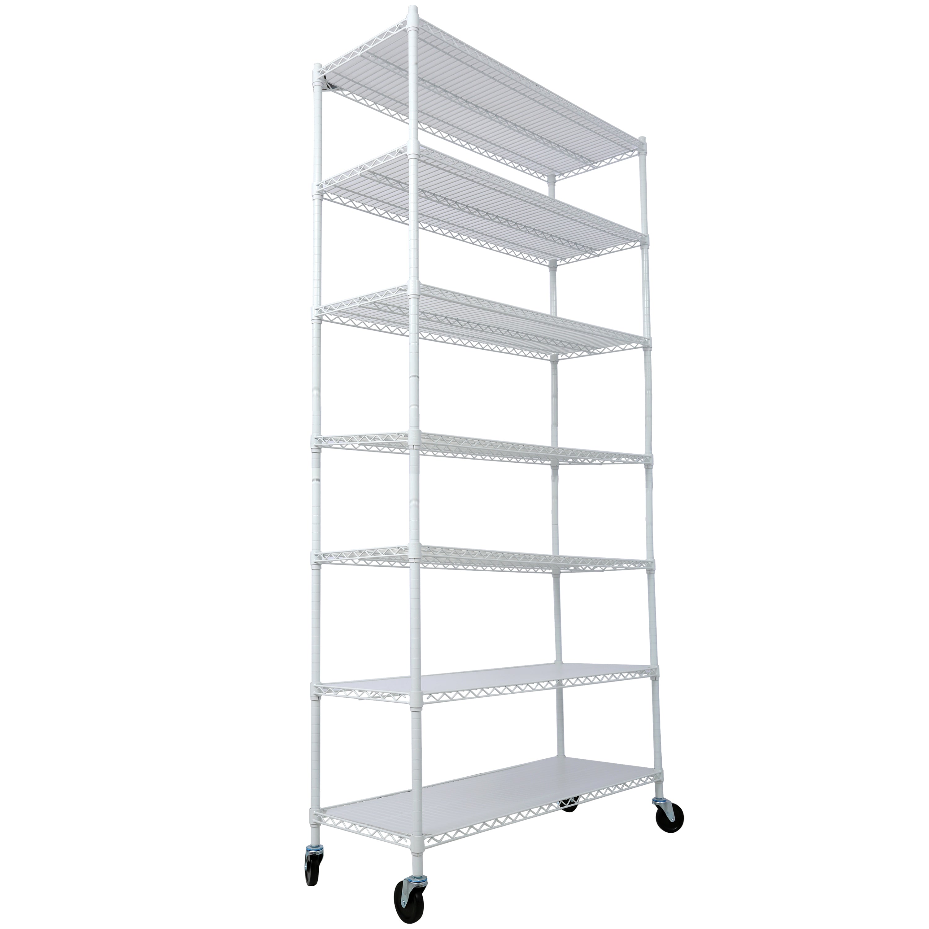 White 7-Tier Metal Shelving Unit | 2450lbs Heavy-Duty Adjustable Storage Rack with Wheels & Liners