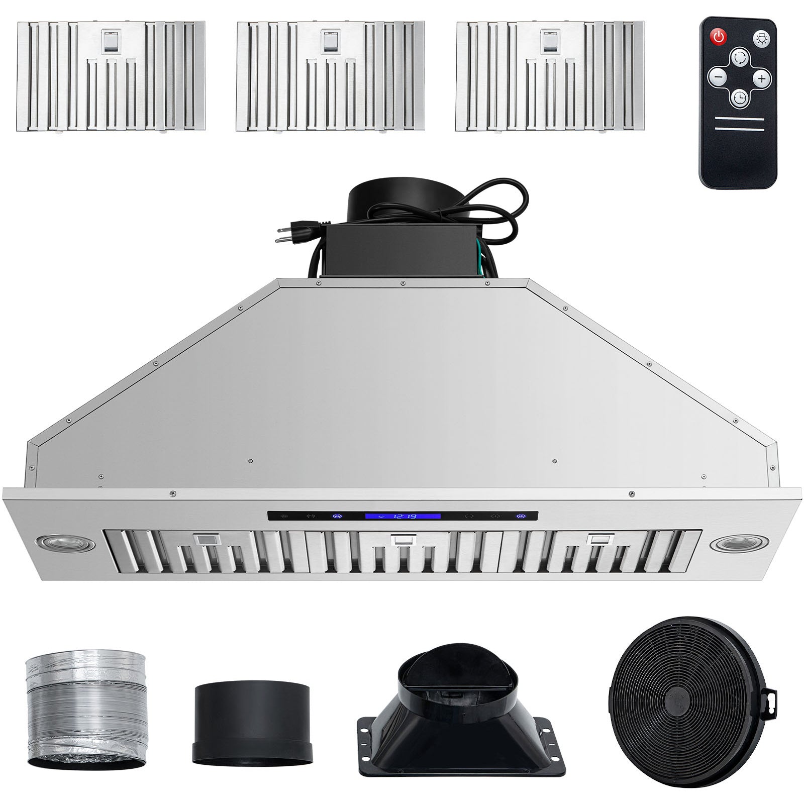 - Powerful But Quiet: The main body of our built-in range hood is made of stainless steel, with ETL certification, providing high strength and durability. It is rust-proof and corrosion-proof for easy cleaning. The galvanized motor offers powerful suction with a maximum of 900CFM speed. It can easily and effectively take away large amounts of smoke and oil grease from the air in your kitchen. Meanwhile, the noise level at the highest speed is low at 62dB, bringing you a quiet cooking zone.