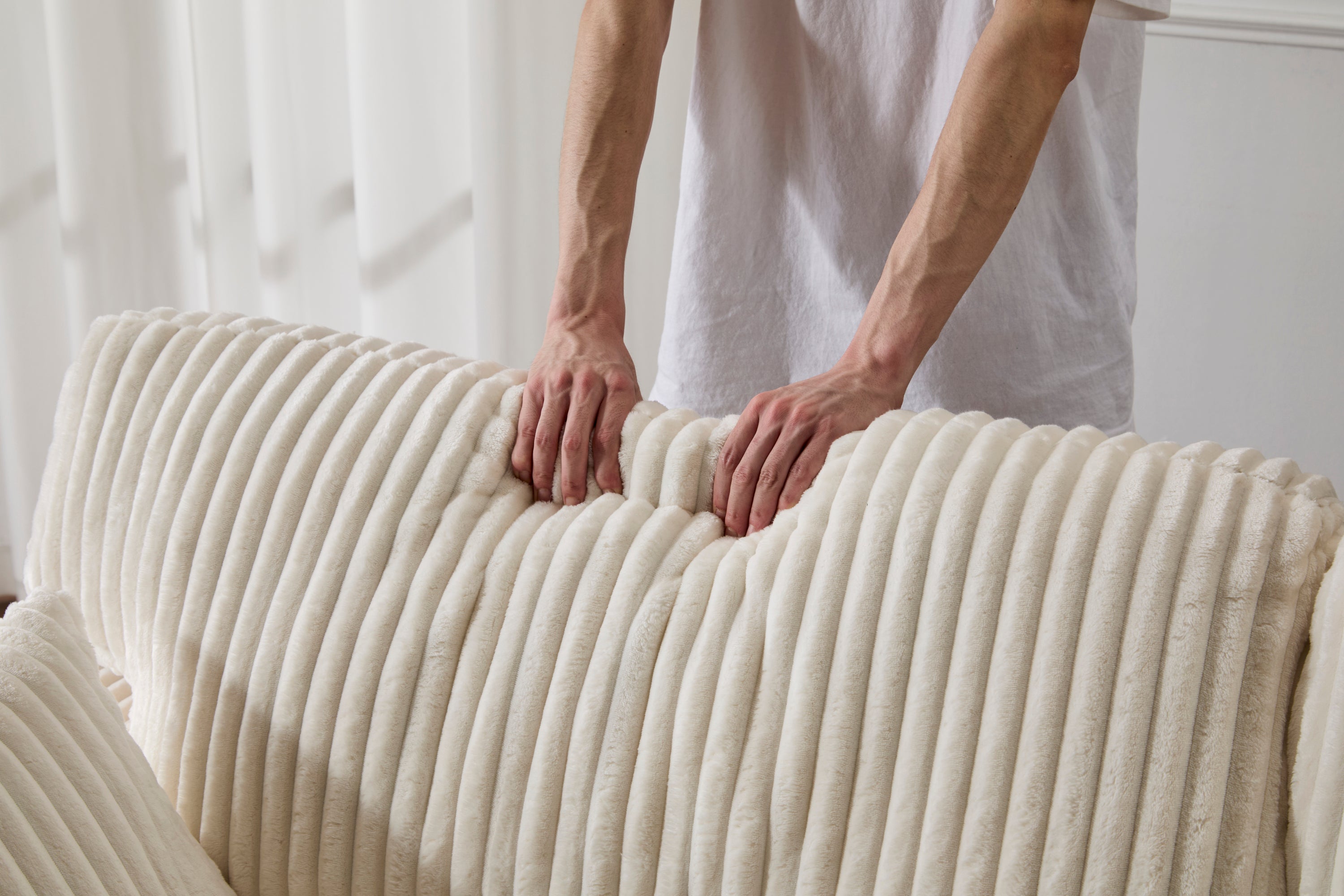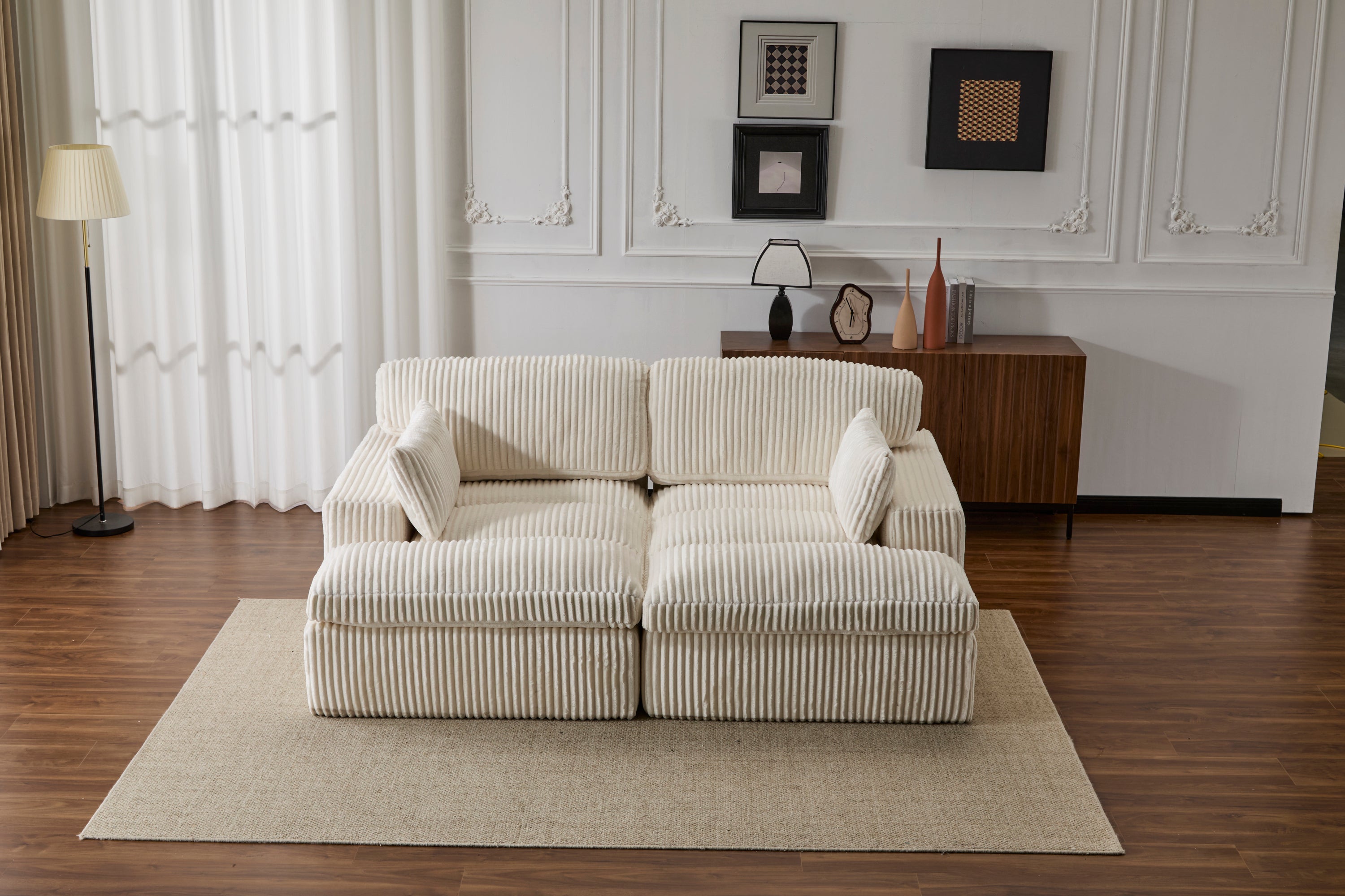 Product Description: Indulge in ultimate comfort with our oversized double chaise lounge! This luxury sofa bed features a deep seat and soft corduroy upholstery, creating a cloud-like experience. Perfect as a sleeper couch, sectional sofa chaise, or loveseat for your living room, this reading chair requires no assembly. Enjoy stylish relaxation in pristine white.