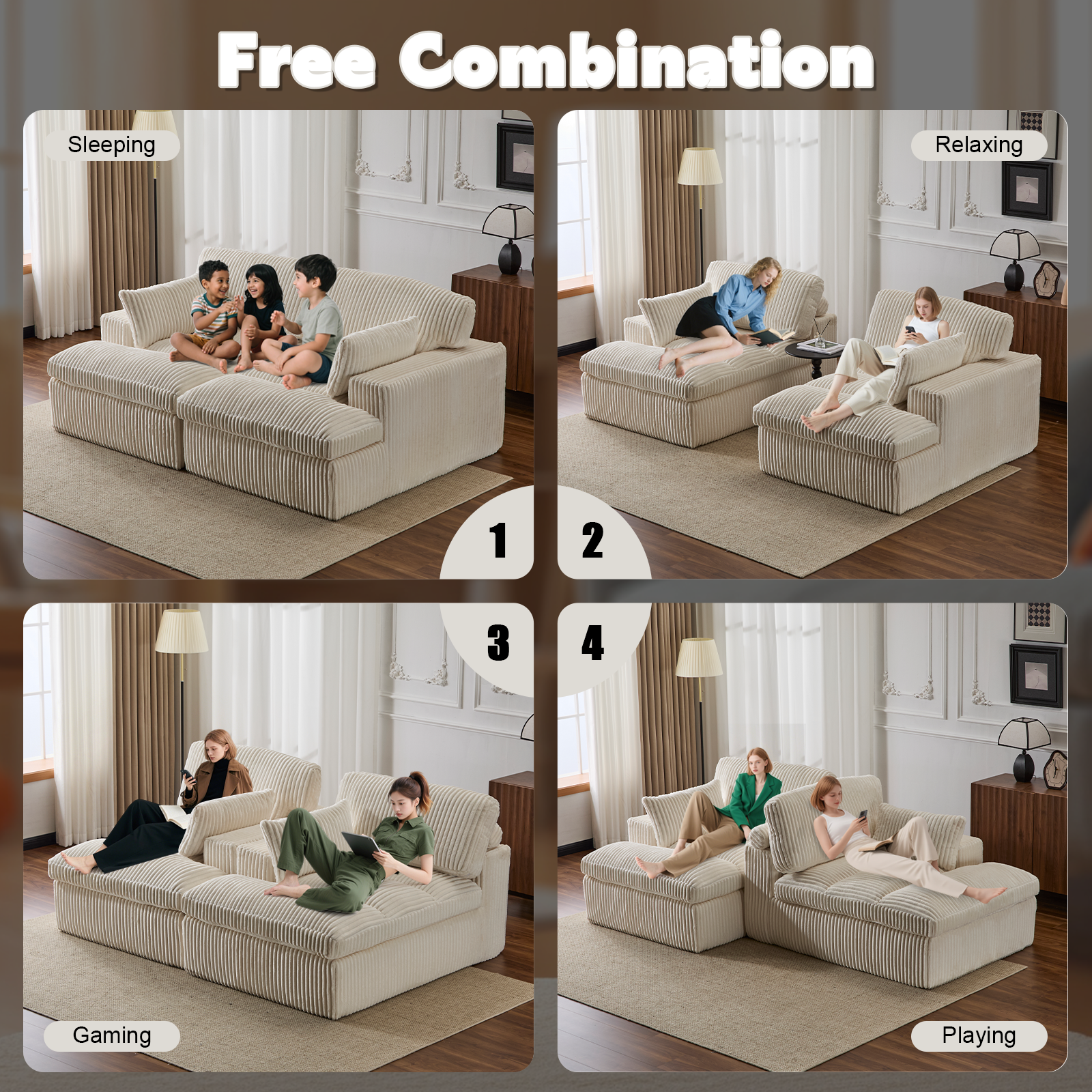 - 【Modular Design for Flexibility】This modular sectional sofa adds extra seating and a cozy relaxation spot in your living room or family den. Its design allows for easy rearrangement to create a personalized lounge area.