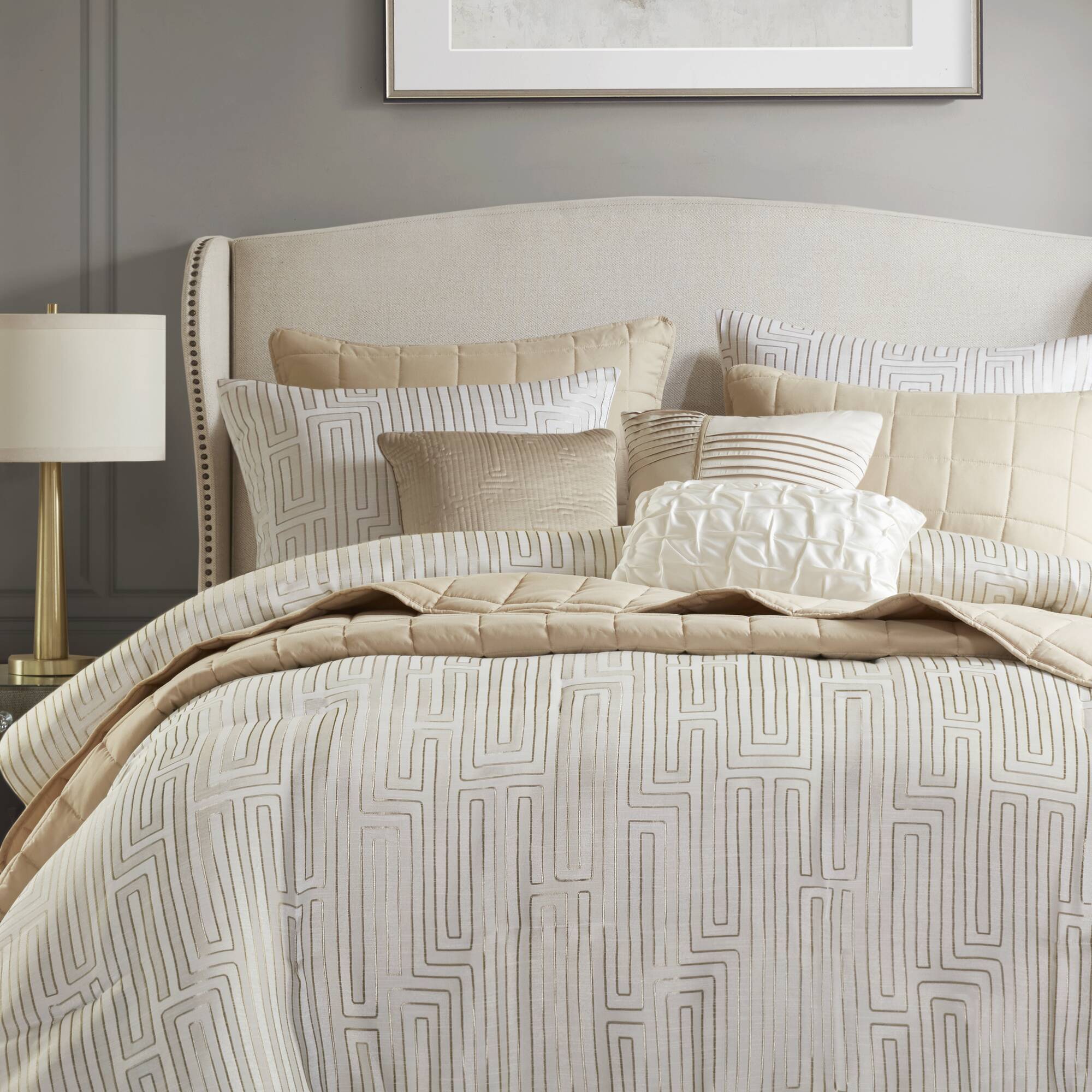 10 PCS Cal King Luxury Jacquard Comforter Set Ivory
