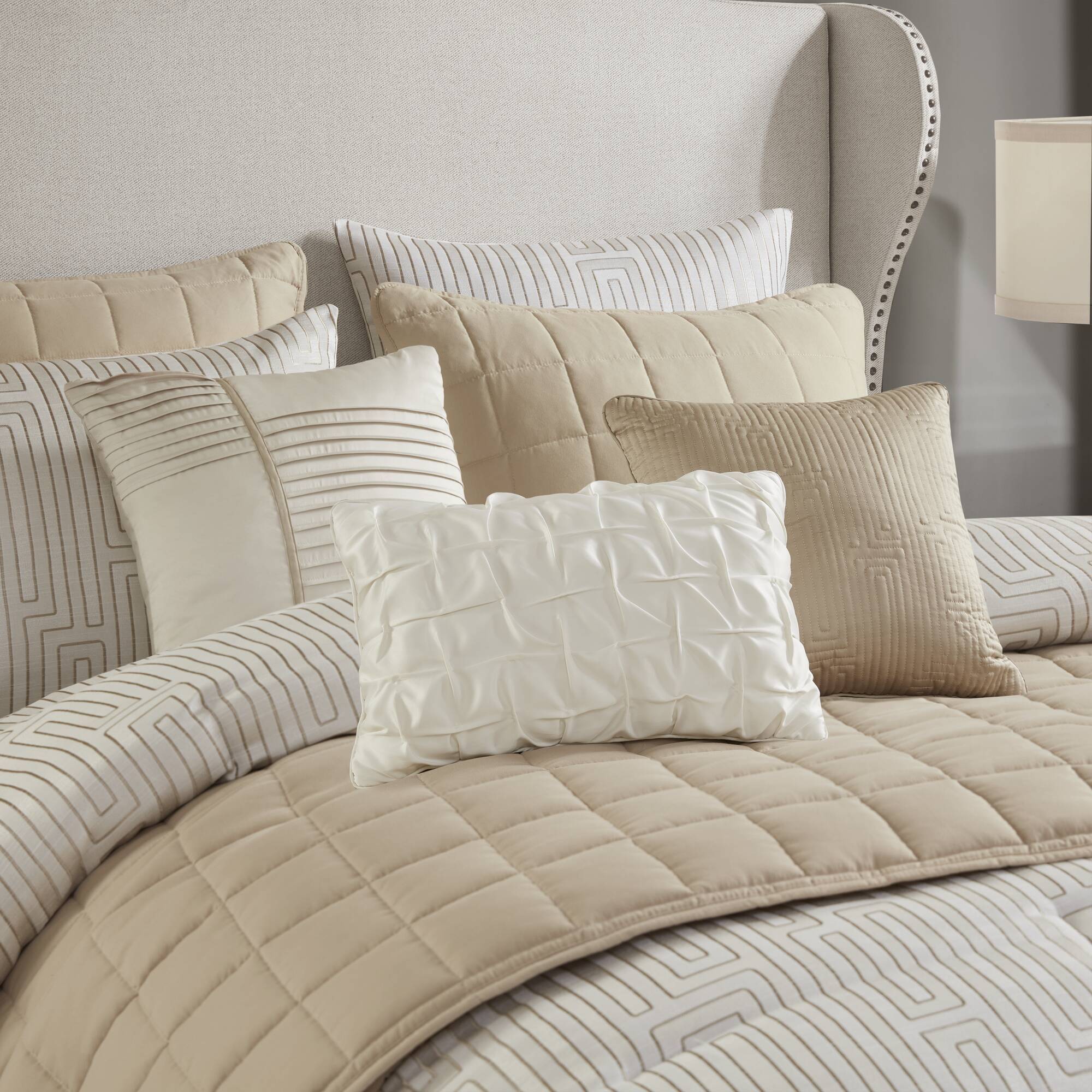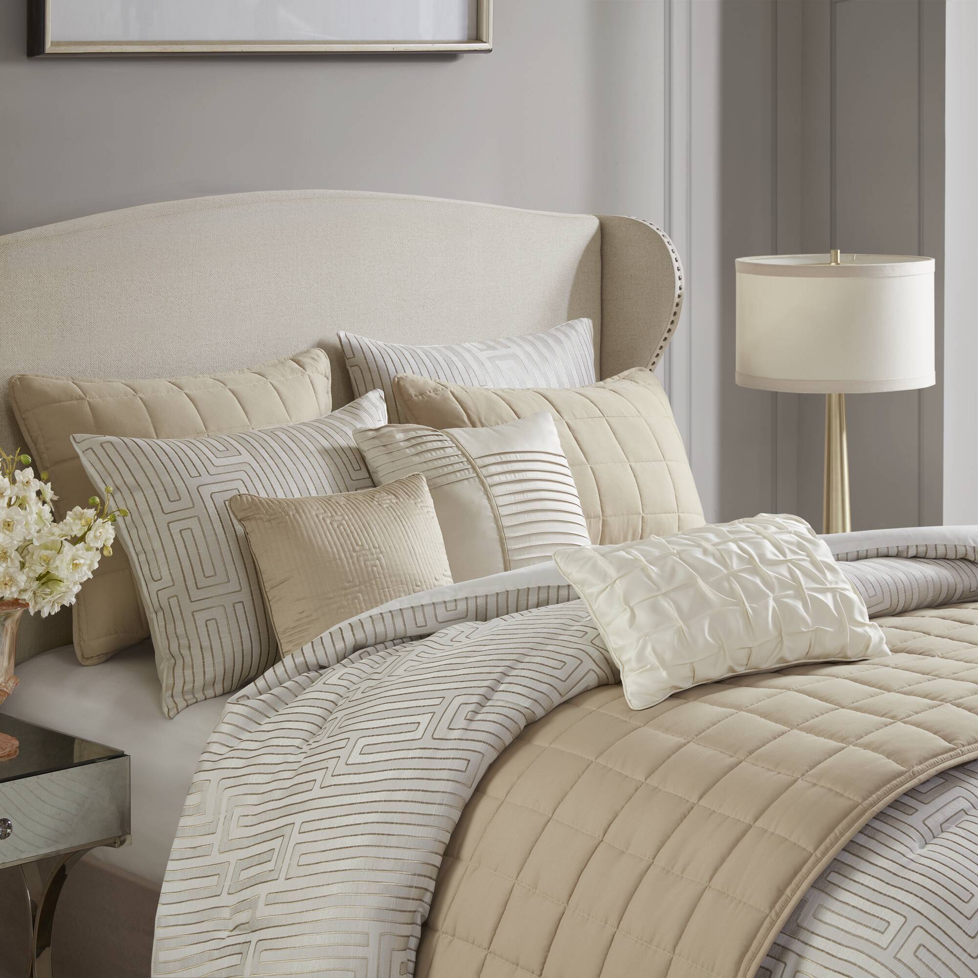- Decorative Pillows - Featuring a delicate mix of designs, including embroidered, pleated, and refined finishes with luster, all color-matched to enhance the entire set.