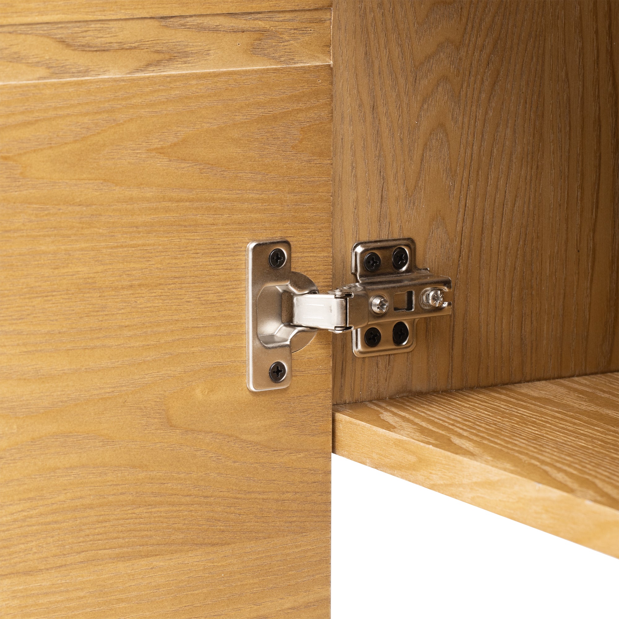 The four-door retro buffet cabinet with storage is a retro sideboard harmoniously blending elegance and practicality. Its elegant construction is made from high-quality materials, combining stability and storage functionality due to its exquisite design. It’s available in 2 colors: Natural and Black. Whatever color you choose, the accent cabinet will easily fit your home decor, offering a unique aesthetic that stands out in any room.