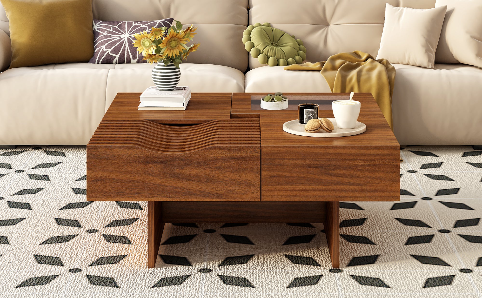 - The Multifunctional Square Coffee Table is designed to fit seamlessly into a variety of room styles. Whether placed in a modern living room, a cozy family room, or even a sleek office space, its versatility allows it to complement both contemporary and traditional interiors.