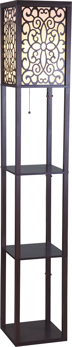 • 65' H Brown 3-Shelf Floor Lamp with Flower Shade