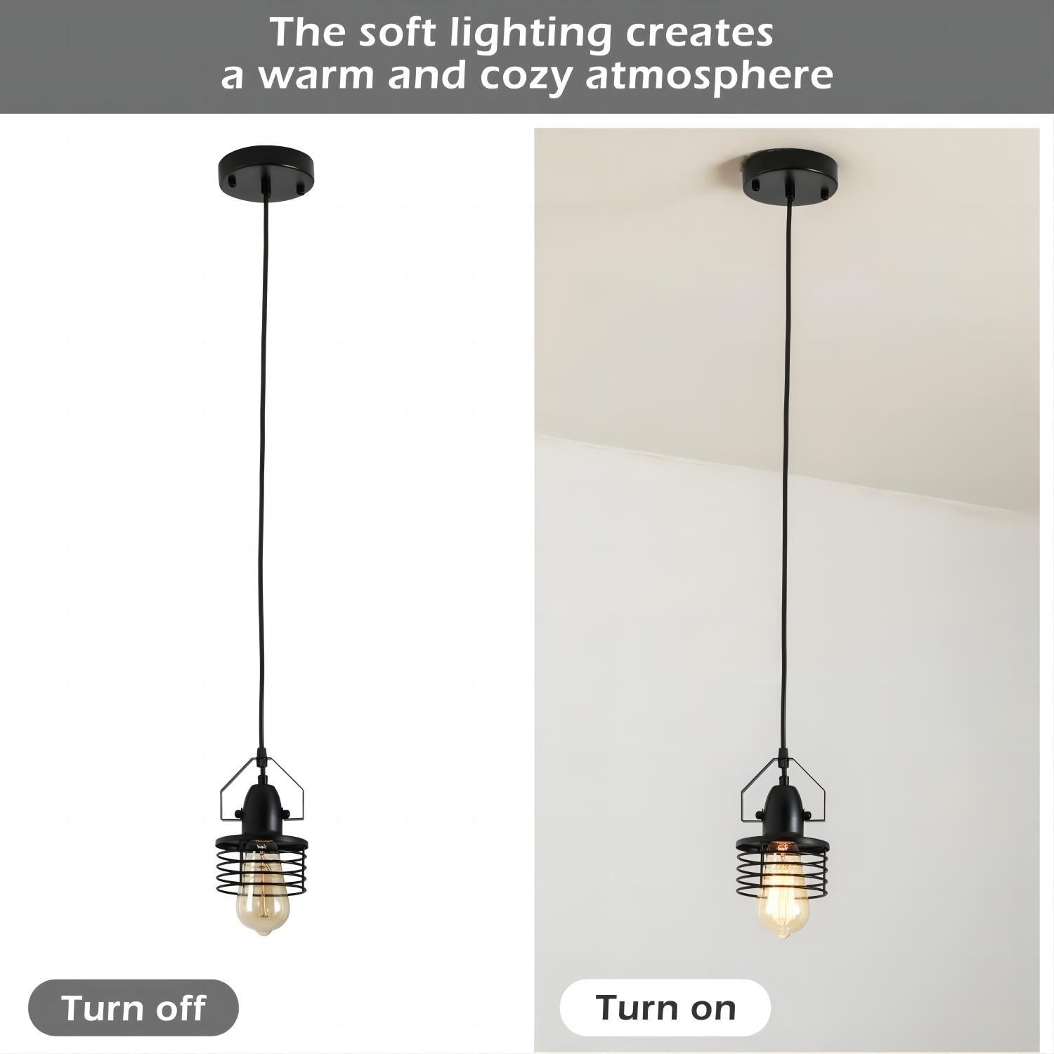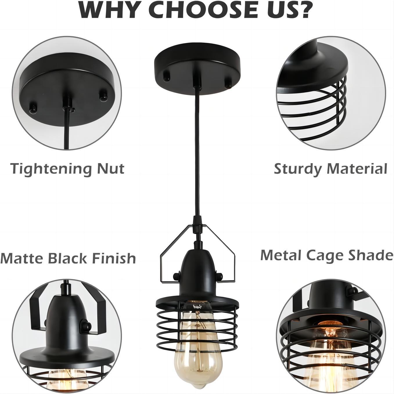 - 【Industrial Vintage Design】Mini pendant lights in high-quality metal cages perfectly fit industrial retro style yet modern home style, and add a touch of brilliance to your home.【Bulb Requirements】The caged pendant light fixtures requires 1xE26 bulb (Max 60W,Bulbs are not included.).