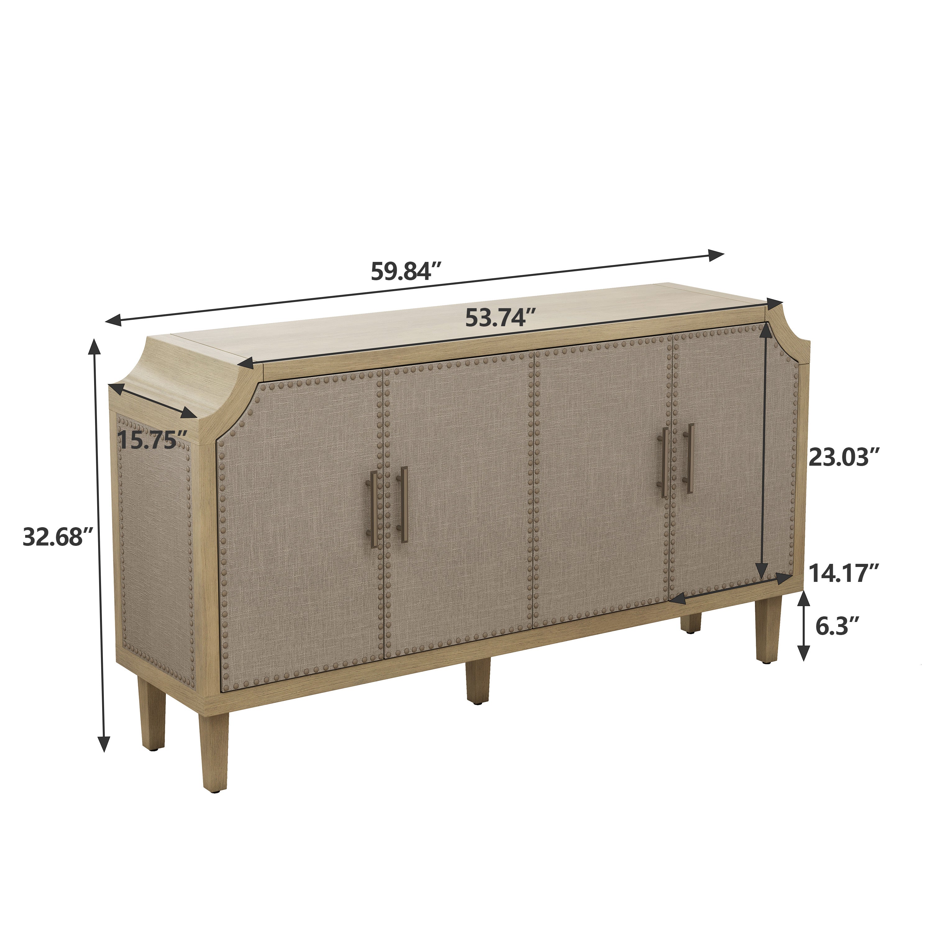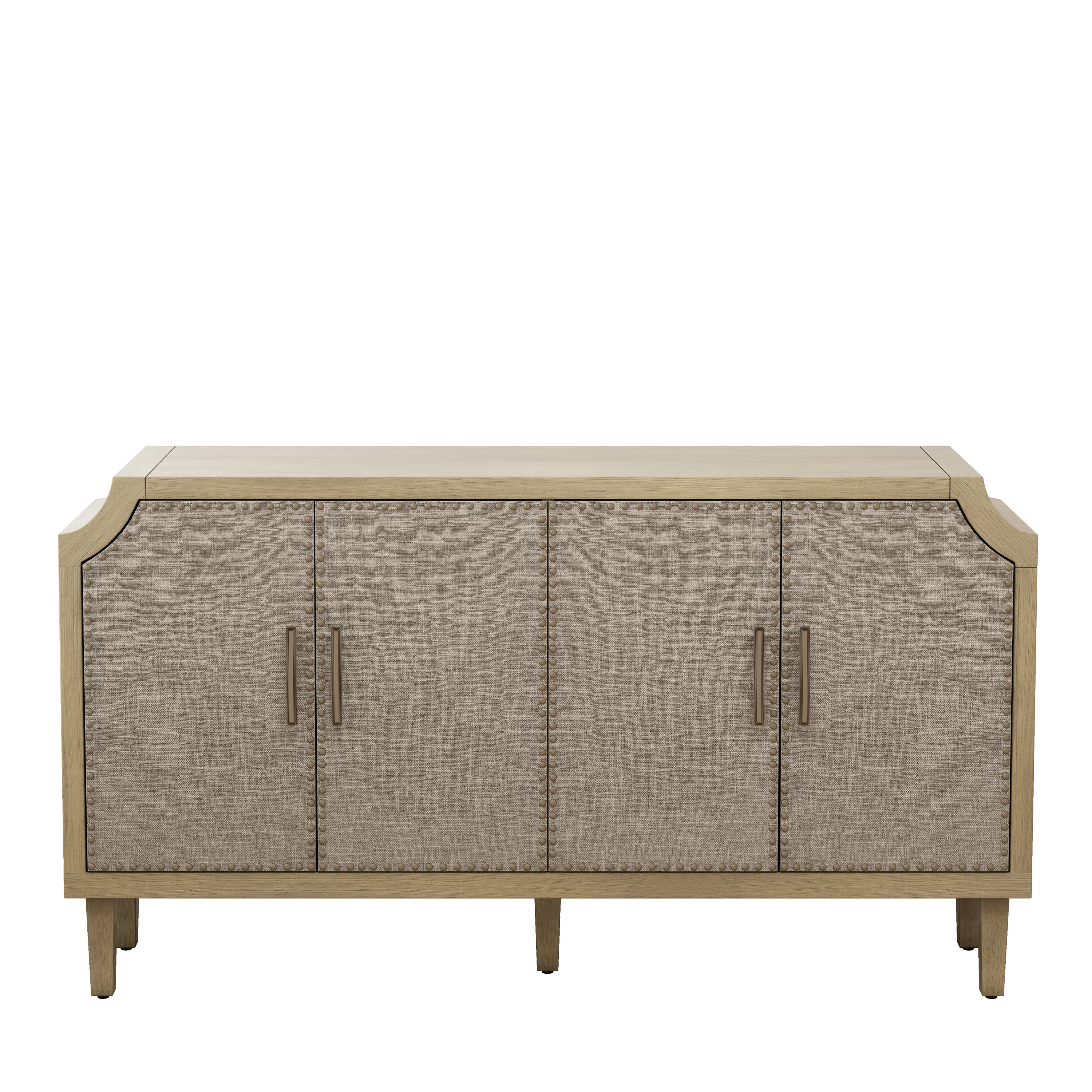 59.84"Retro Industrial Style Rivet Decor 4-Door Cabinet, Linen Decorated Doors, for Bedroom, Living Room, Office, Easy to Assemble