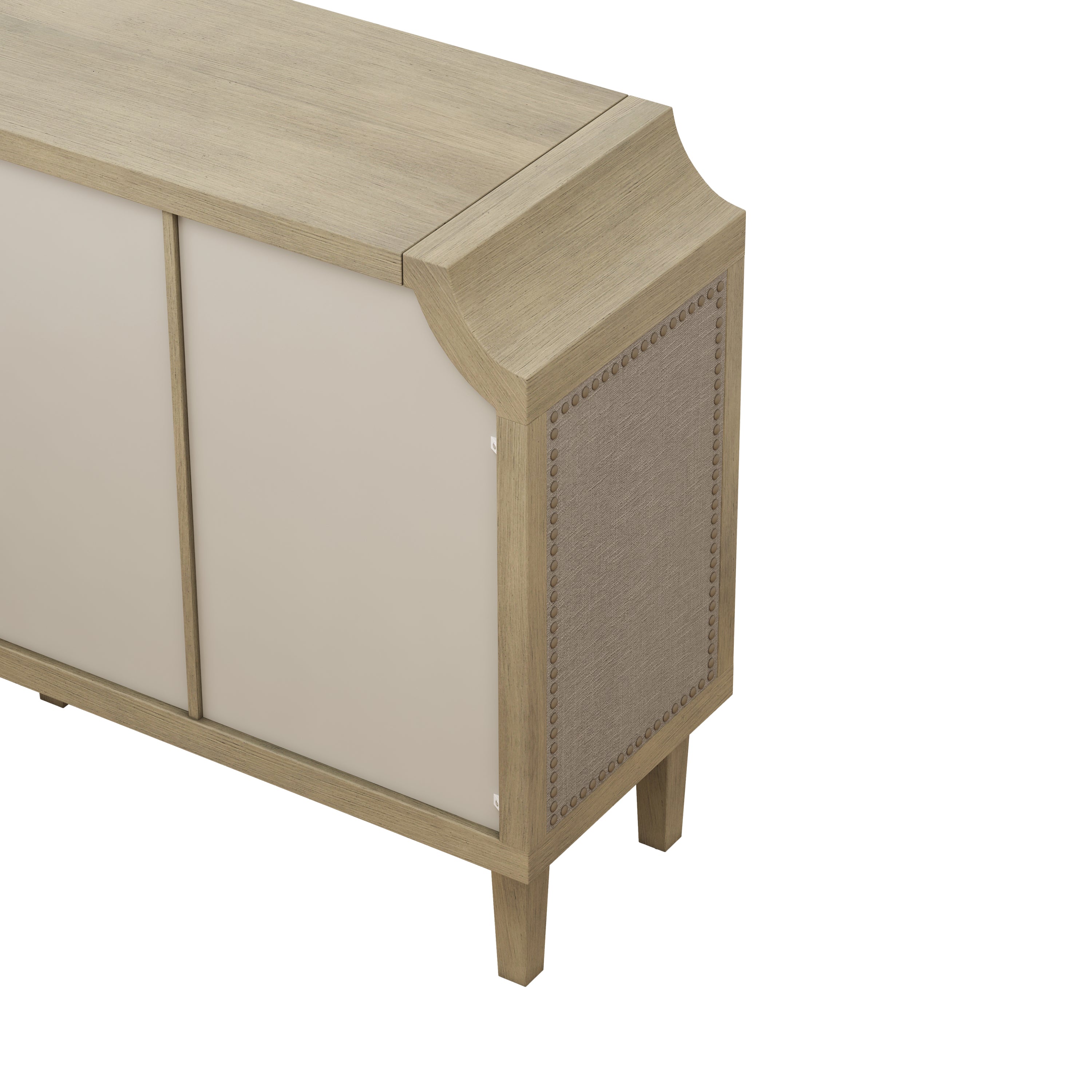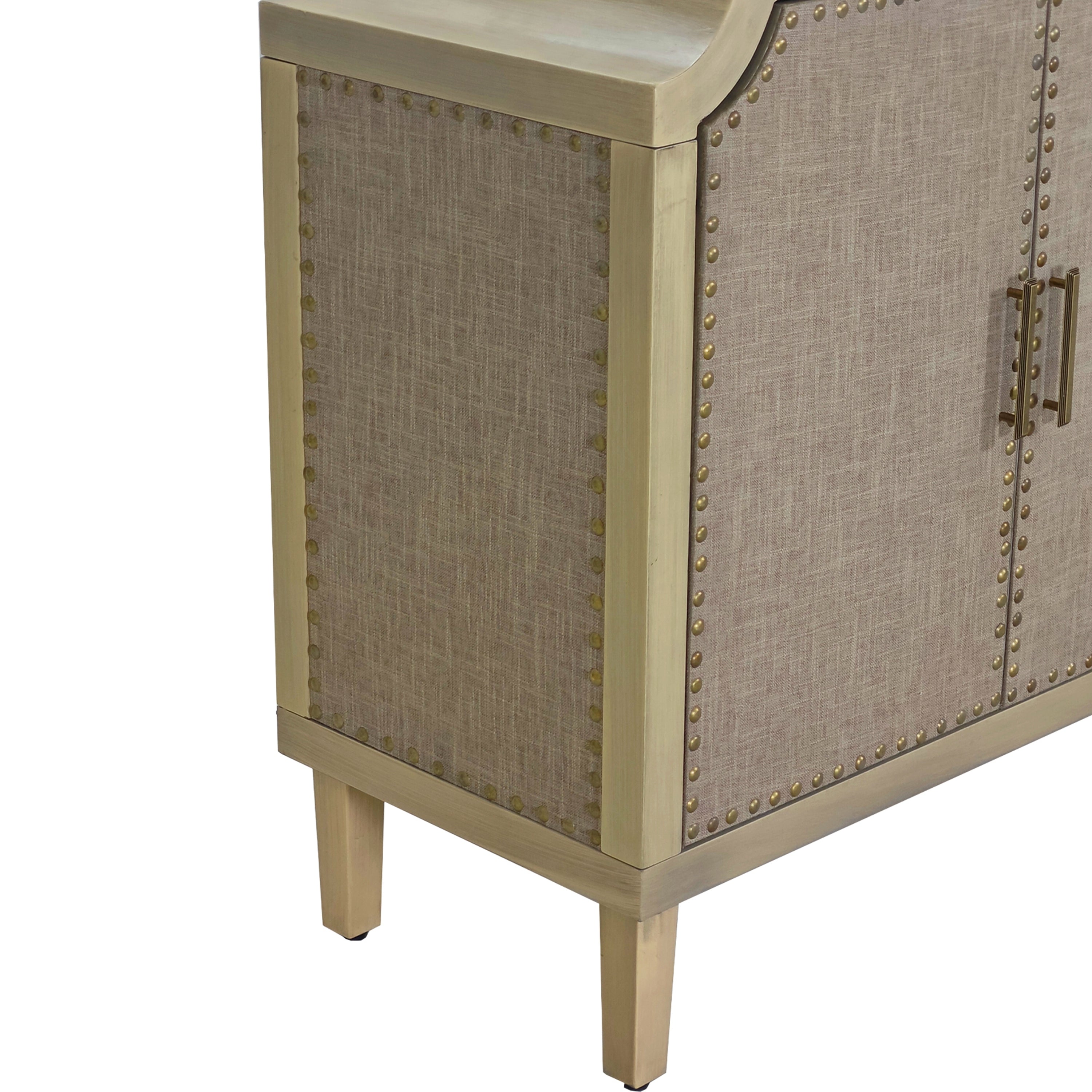 Material Painted MDF+pine legs+linen decor doors+iron rivets