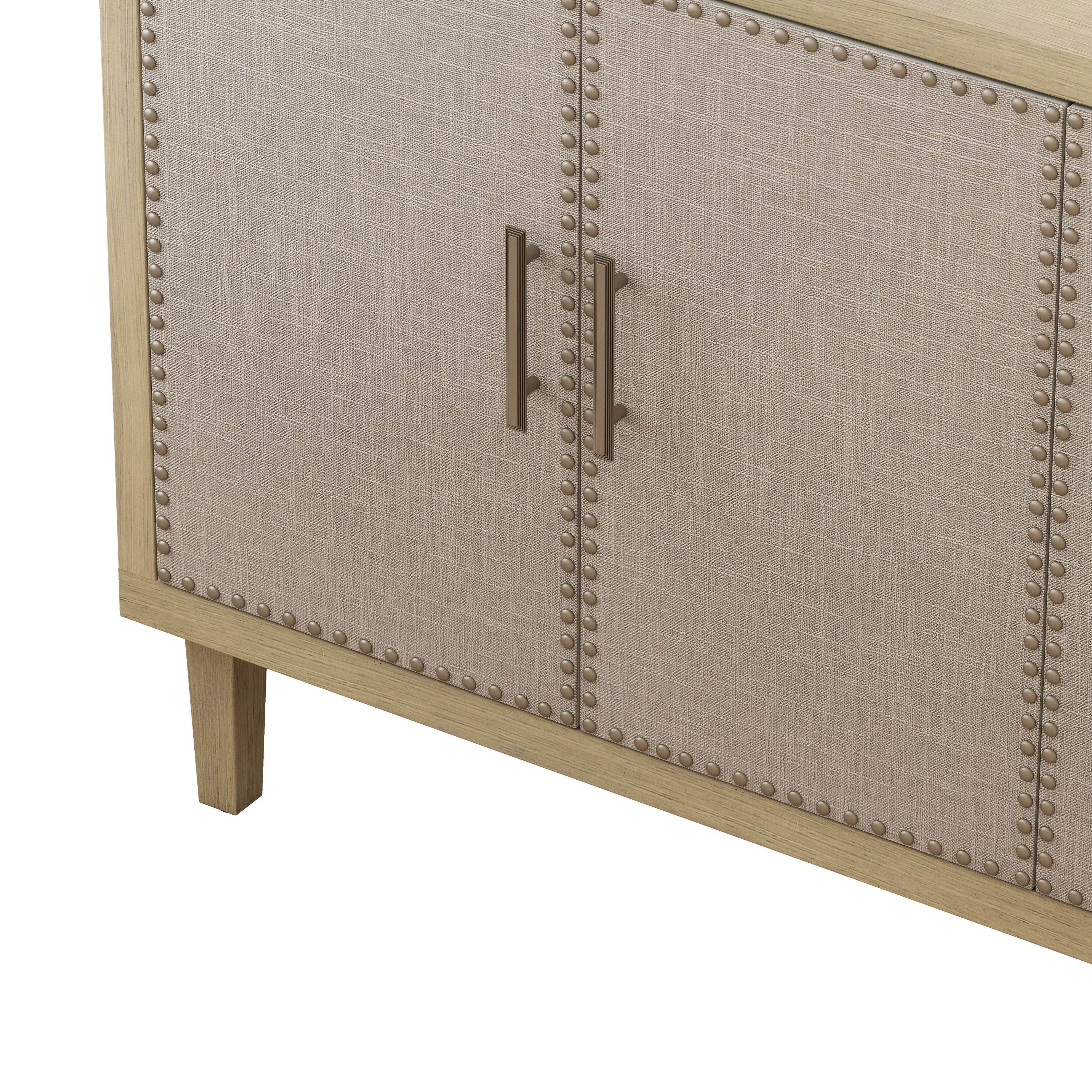 • Vintage Industrial Charm: Add a touch of retro industrial style to your living space with our beautifully crafted four-door cabinet. The rivet decorations and linen fabric doors create a unique and eye-catching design that will surely impress your guests.
