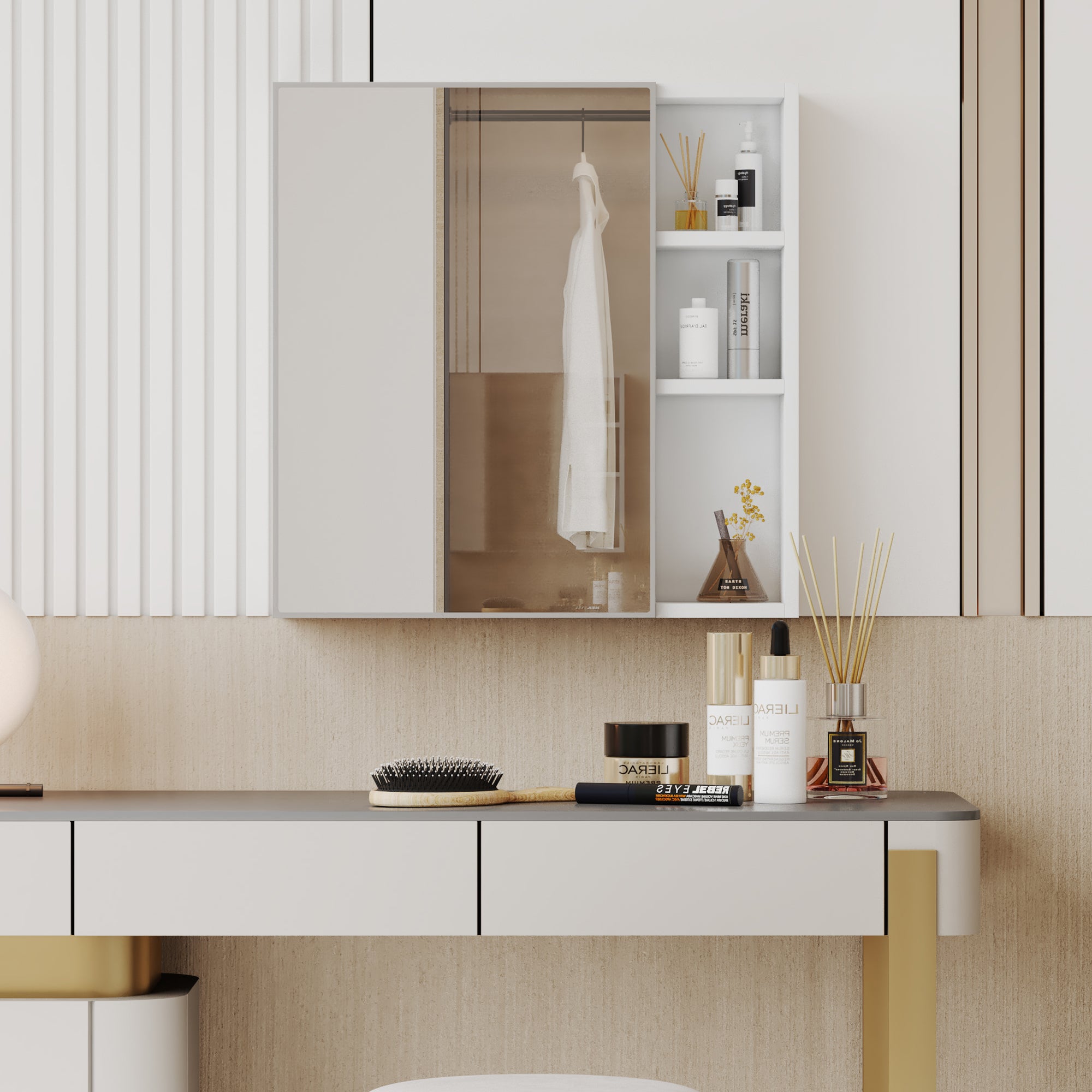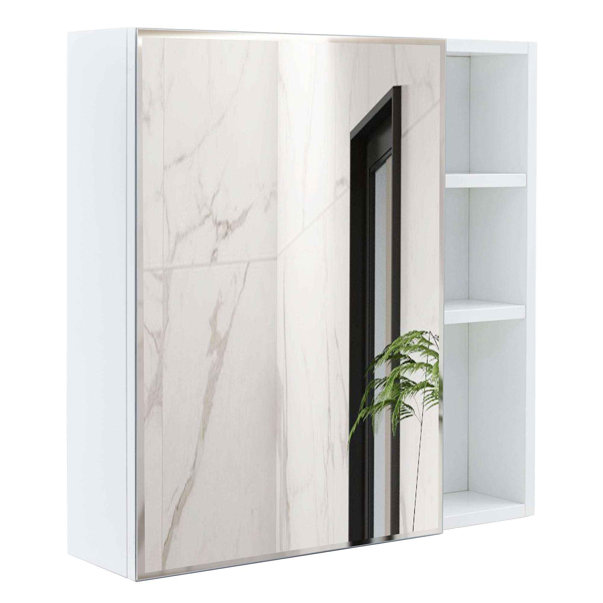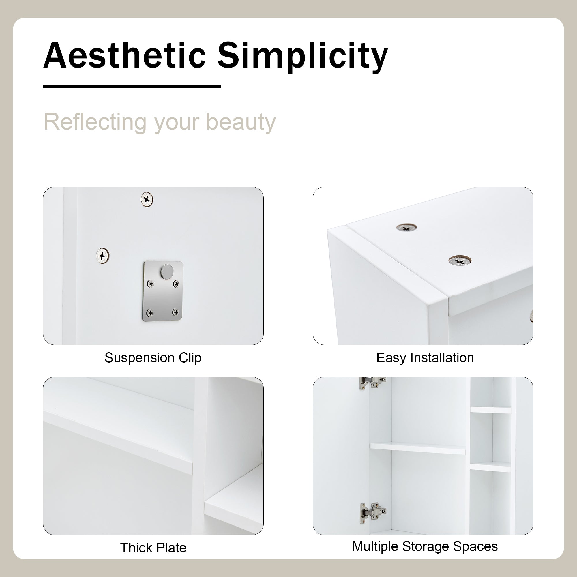 A white MDF material mirror cabinet, bathroom mirror, and a separate wall mounted bathroom mirror for storage and space saving.