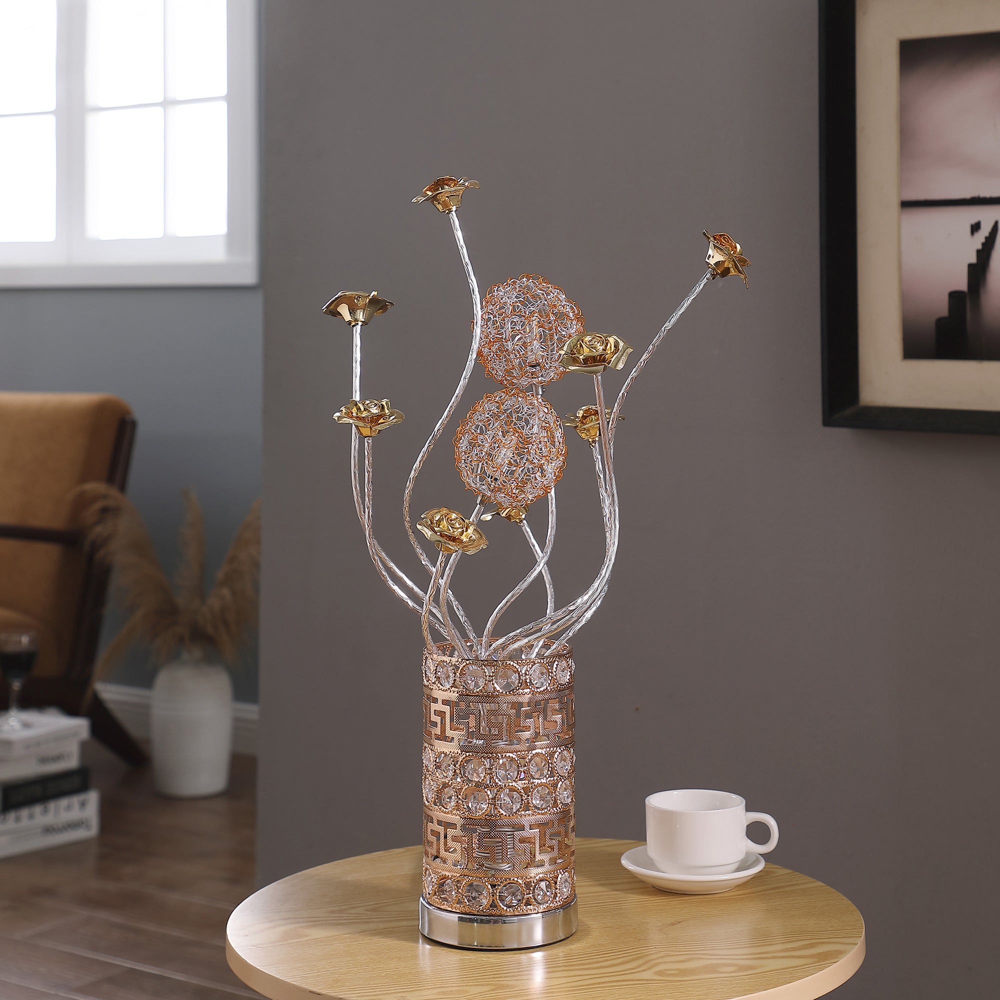 Aluminum Golden Rose Copper/Silver Wire Bud Flower Bud Table Lamp for Living Room, Nightstand Bedside Table Lamp for Bedroom, LED Lamp