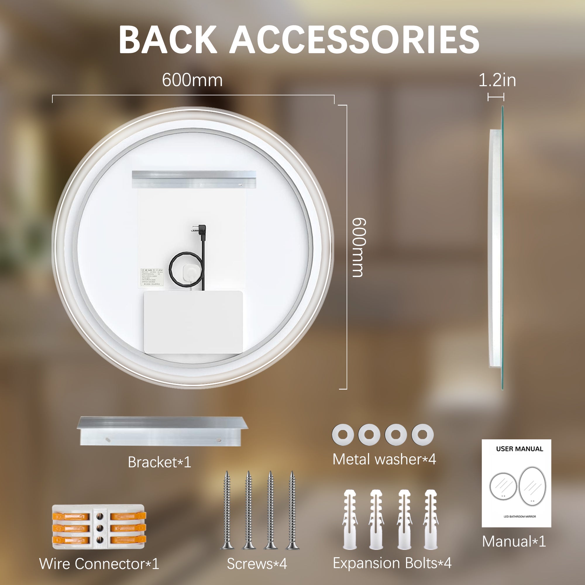 - 【Dimmable and 3 Color Lights】This round LED bathroom mirror provides a customizable lighting experience. With three color temperature lights of 3000K/4500K/6000K and stepless dimming function, you can personalize your lighting to suit any occasion.