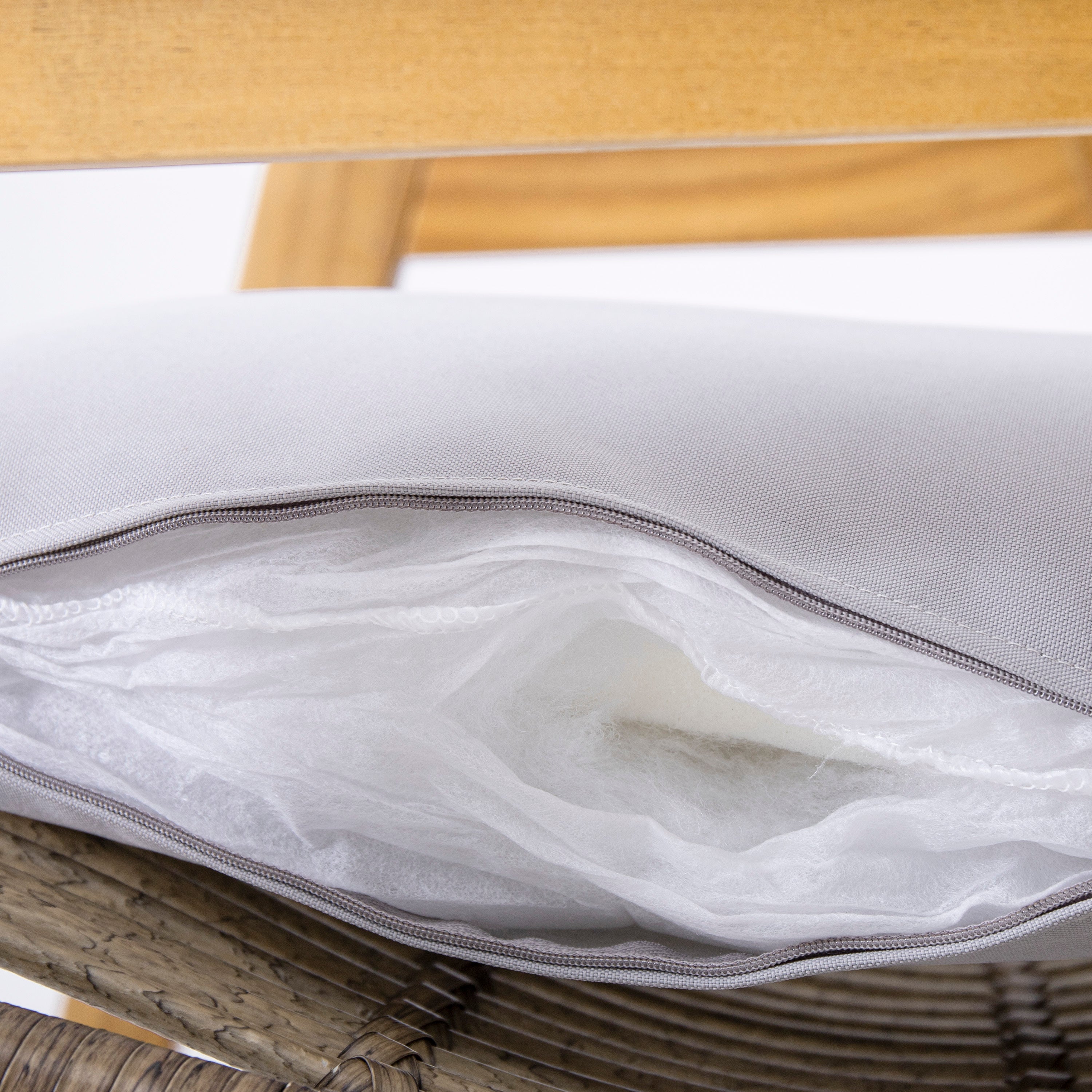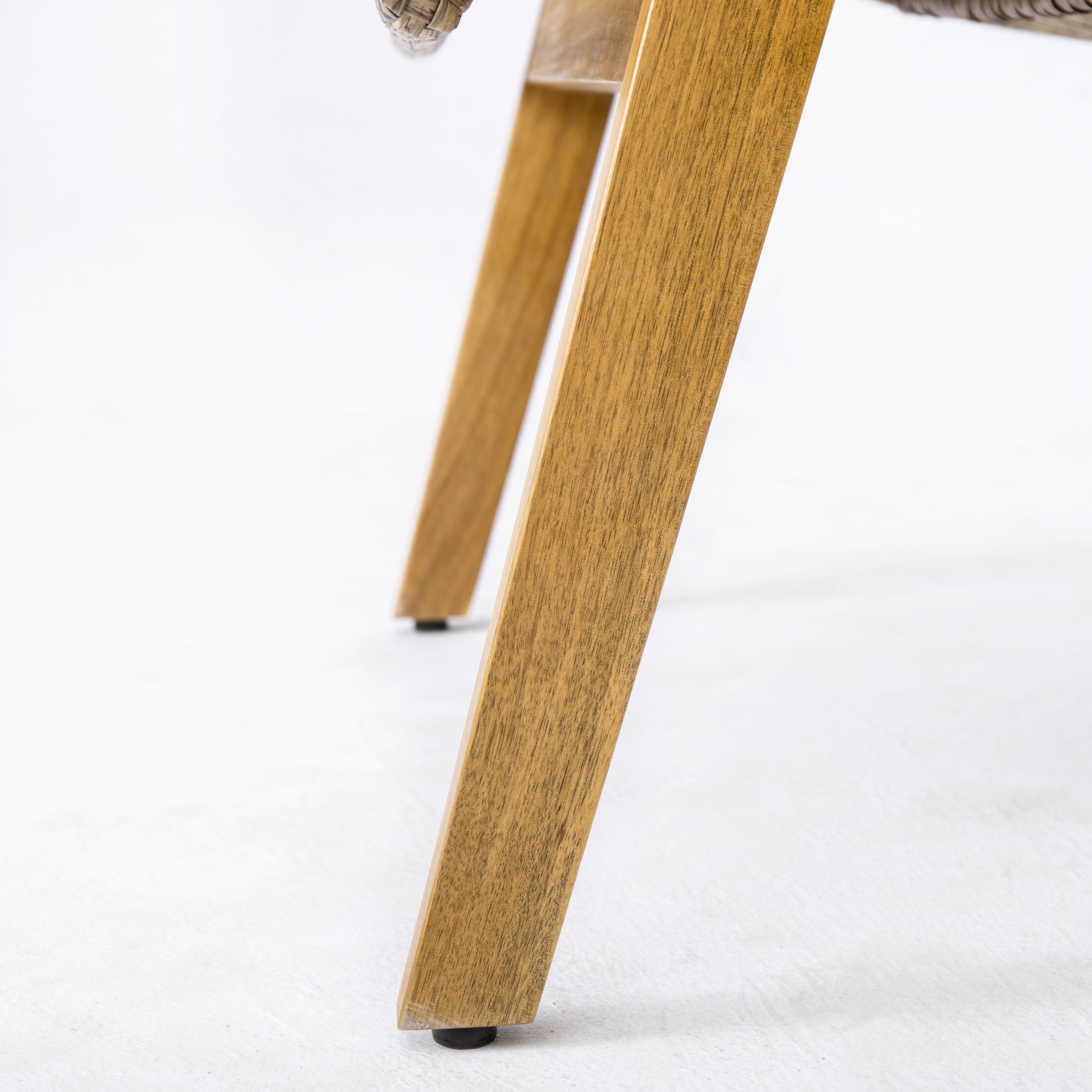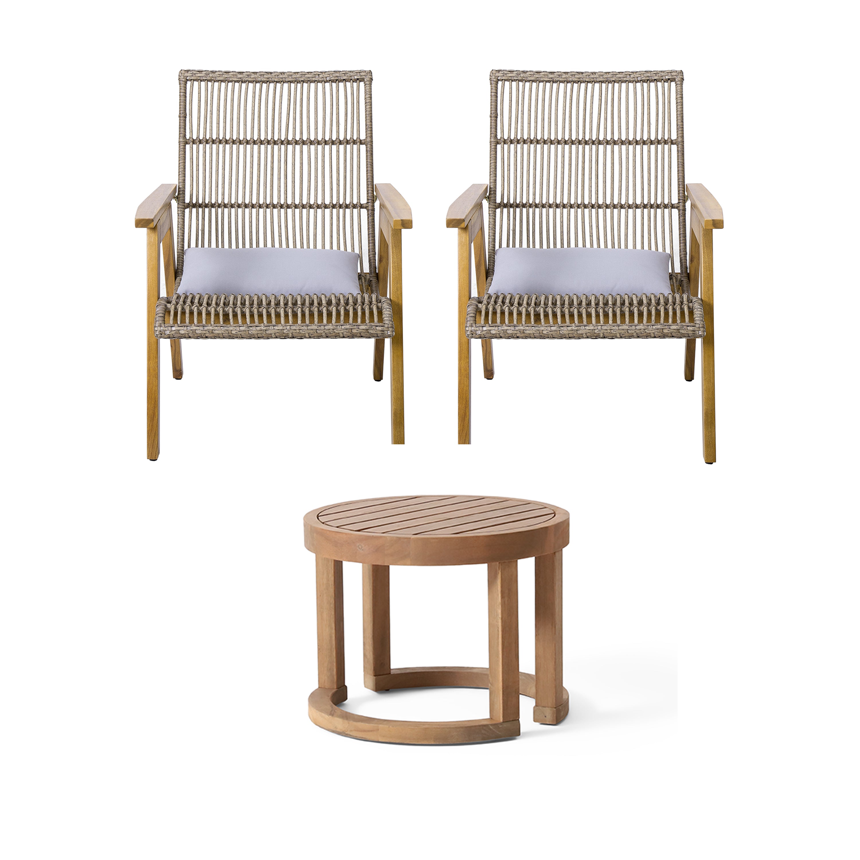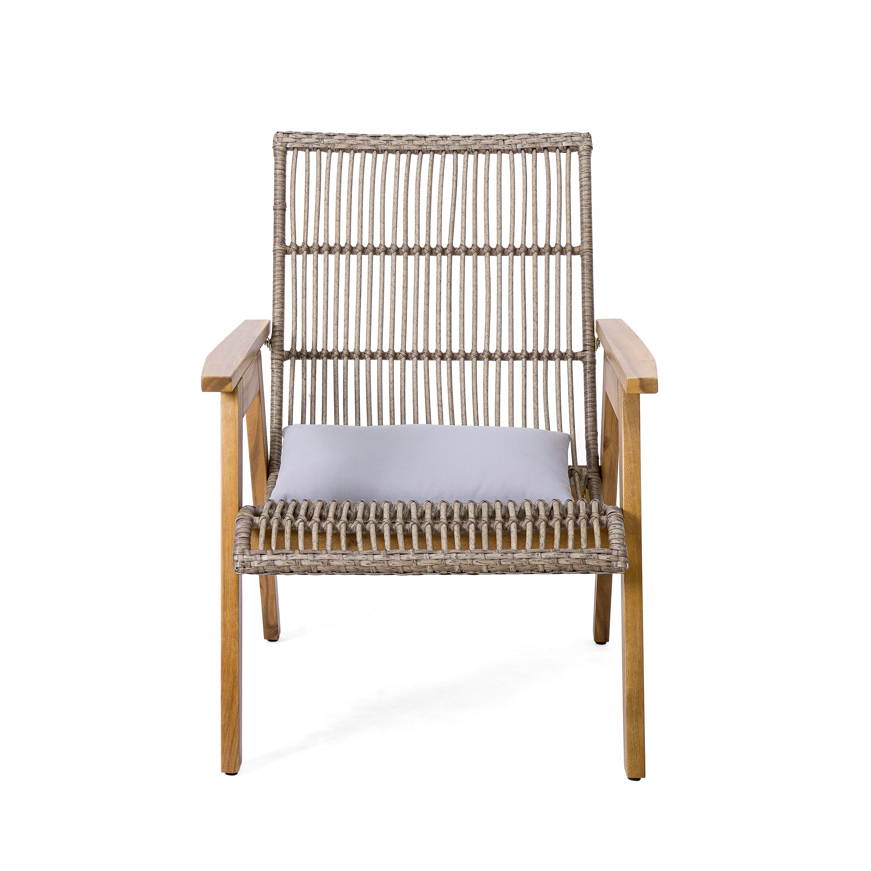 - Stylish and Functional: The combination of natural wicker, teak-finished acacia wood, and light grey fabric creates a harmonious and inviting aesthetic that complements a variety of outdoor decor styles.