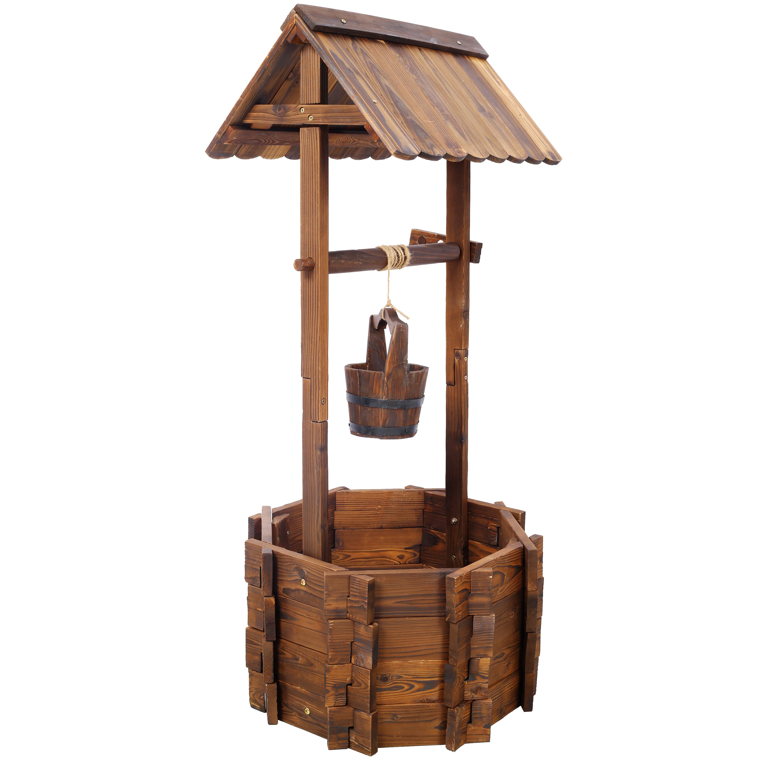- Durable Construction: Crafted from solid fir wood, this well is built to withstand the elements while maintaining its rustic appeal with a weathered brown finish.