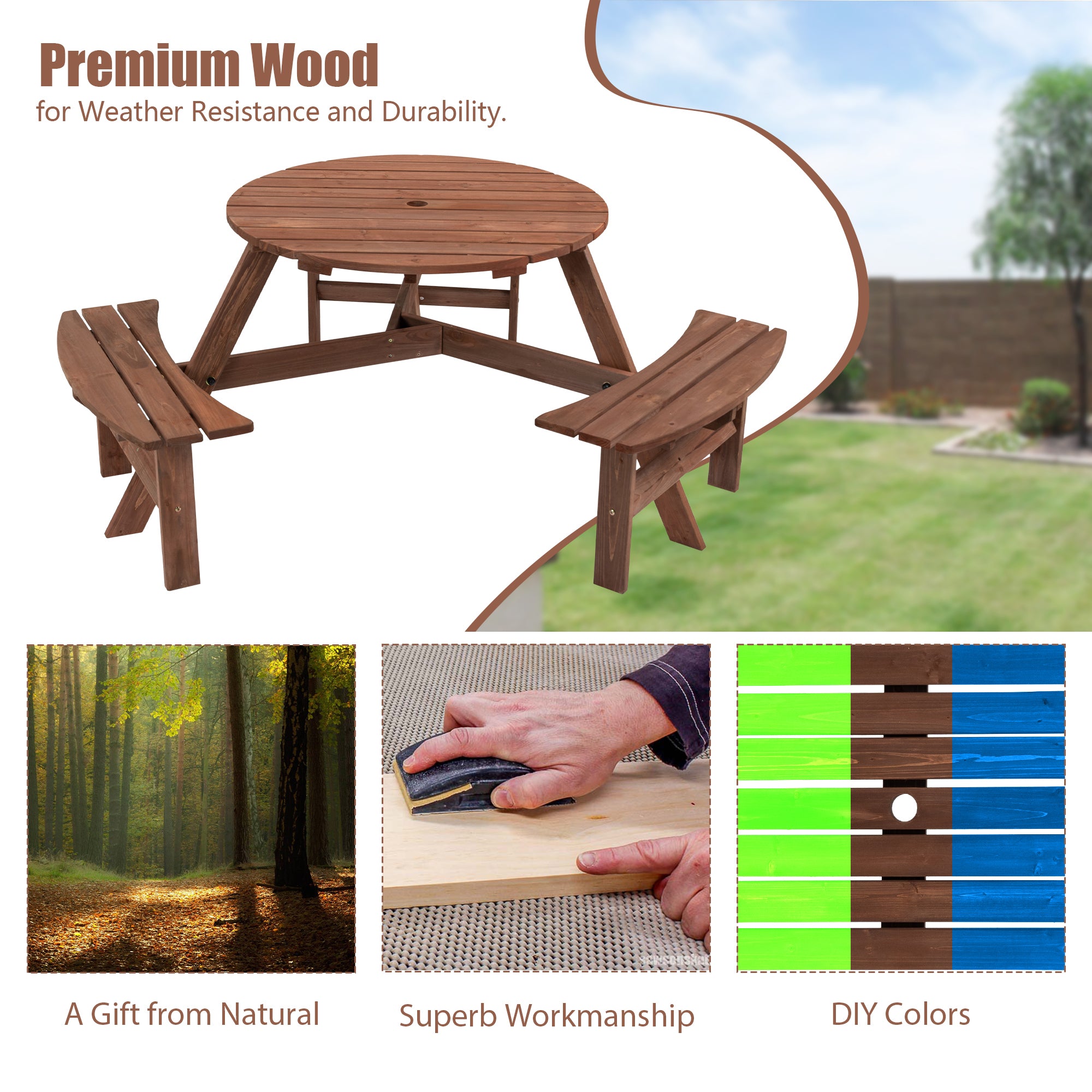 - Available for free painting to DIY your unique picnic table