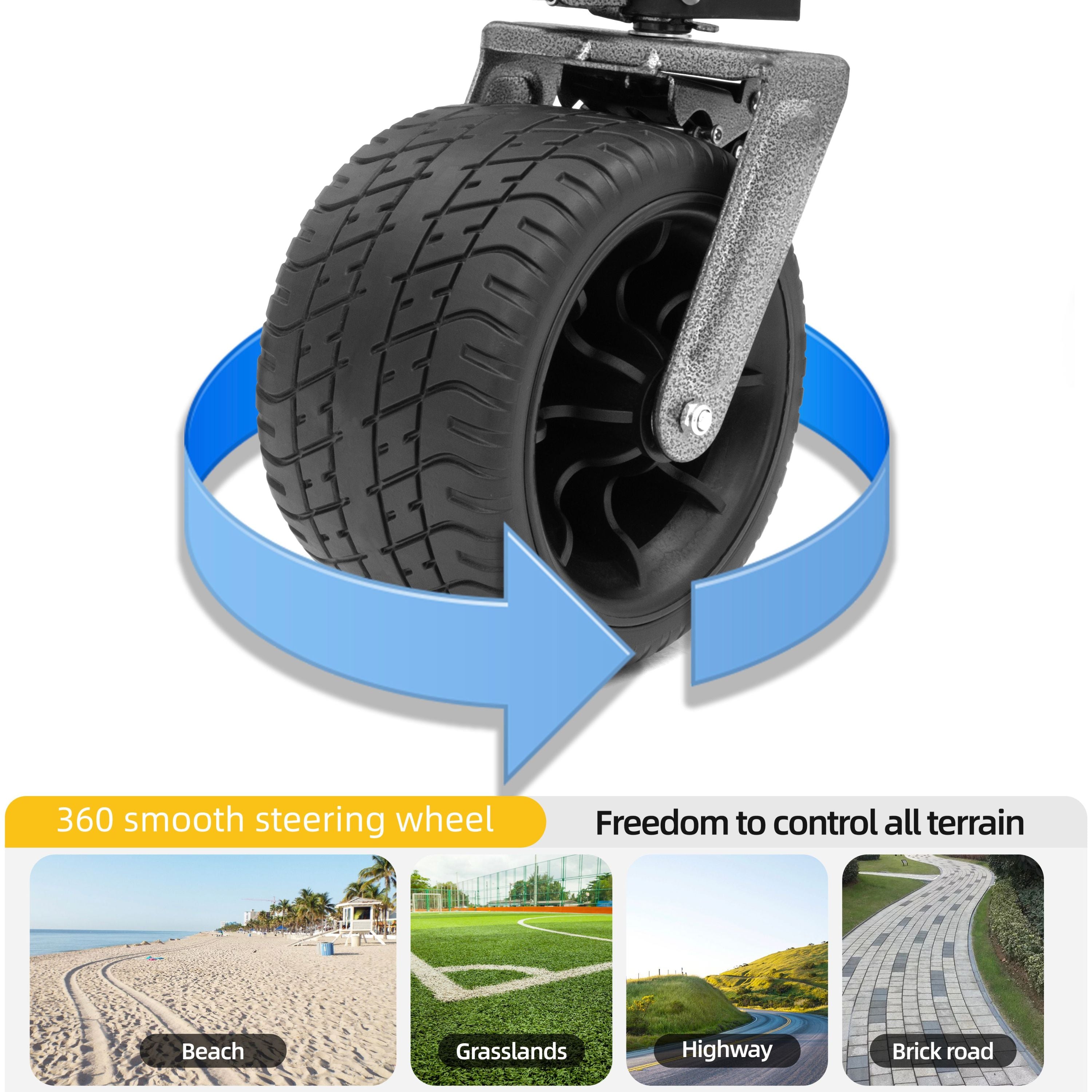 • Smooth Transport with All-terrain Wheels:There are 4 big wheels give you a smooth pull and easy transport this portable cart on sand, gravel, grass, or virtually anywhere. Designed with 360°rotating front wheels that make pushing and pulling of wagon easy and convenient