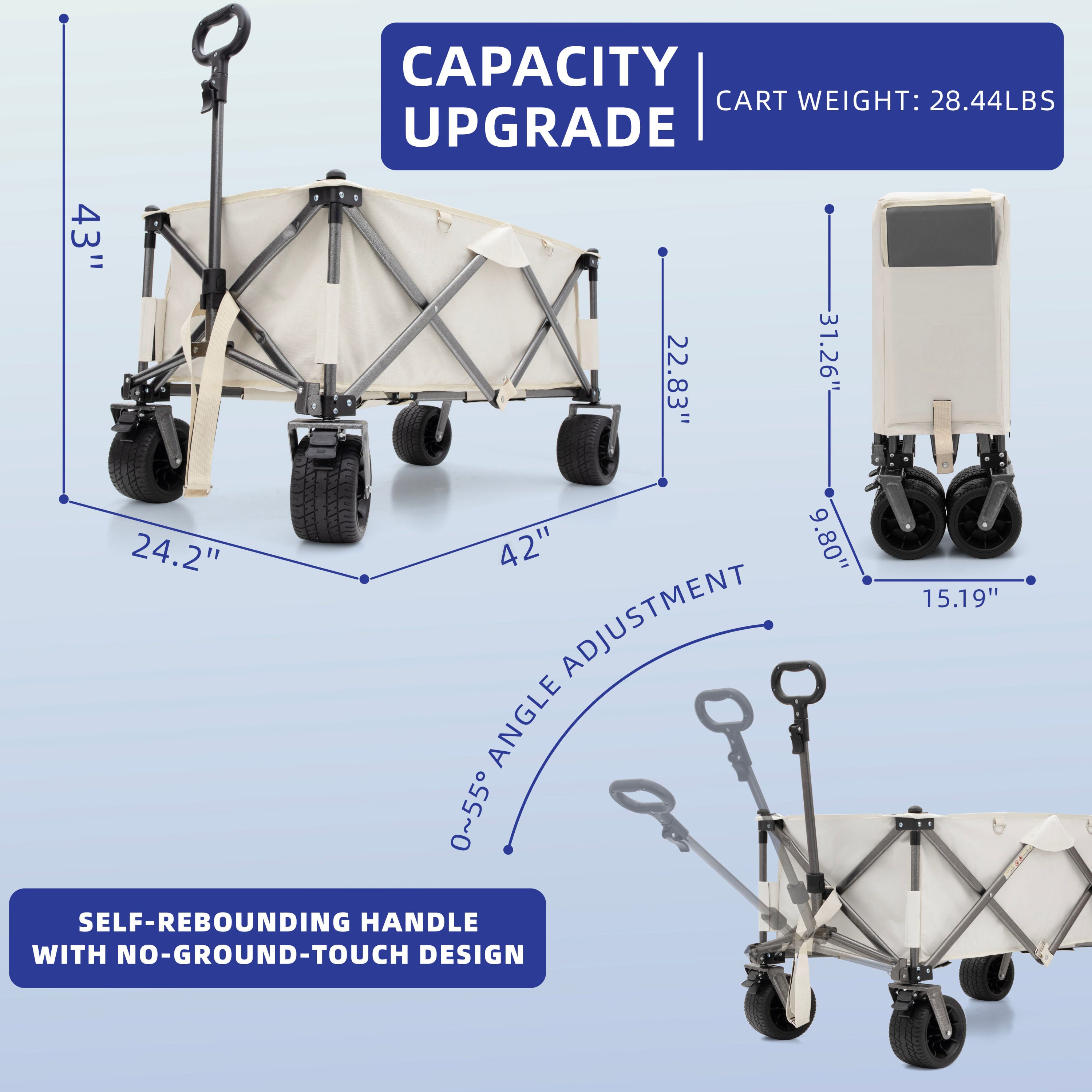Folding Wagon, Heavy Duty Utility Beach Wagon Cart for Sand with Big Wheels, Adjustable Handle&Drink Holders for Shopping, Camping,Garden and Outdoor