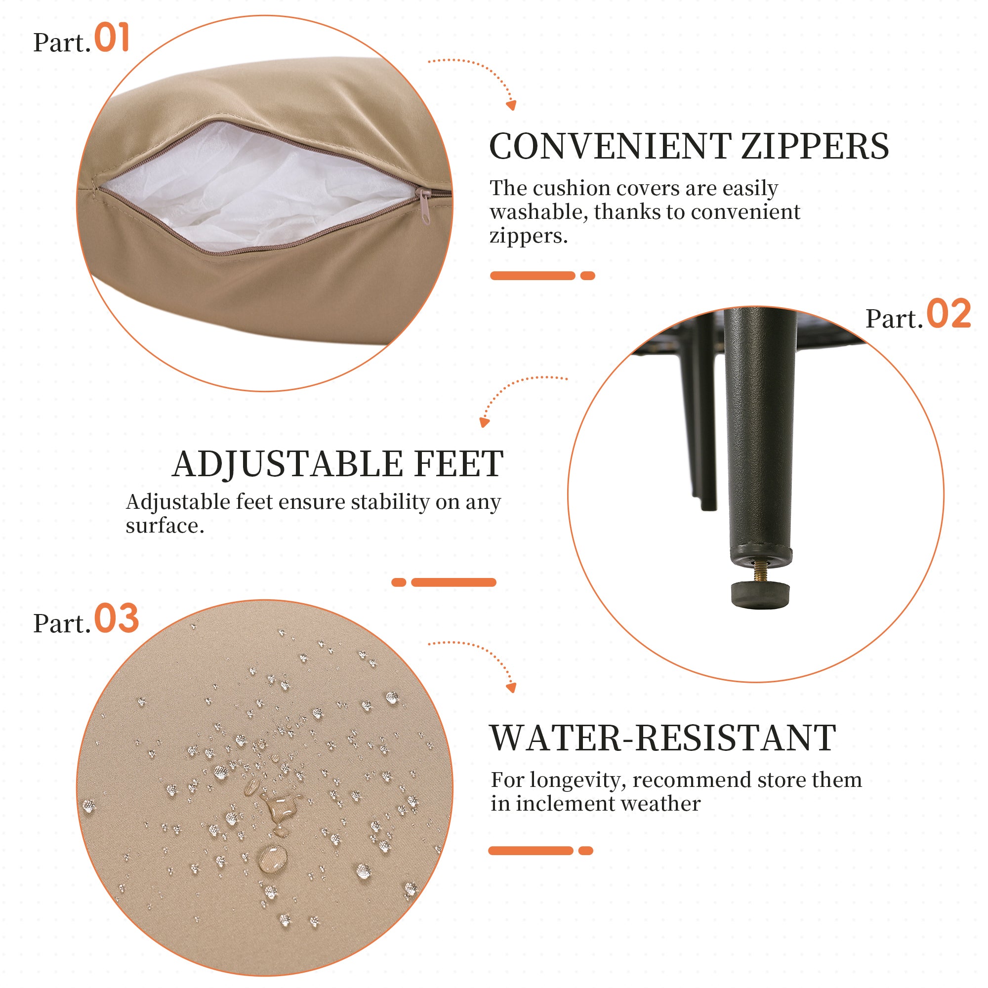 - [Comfortable Pillows&Cushions] Outfitted with four soft water-resistant cushions, each 4 inches thick, this daybed ensures maximum comfort. They are secured by magic tape and straps for stability. Accompanying these are two supportive back pillows, offering excellent back support. Their removable, zippered covers make washing and maintenance a breeze, ensuring long-lasting comfort.