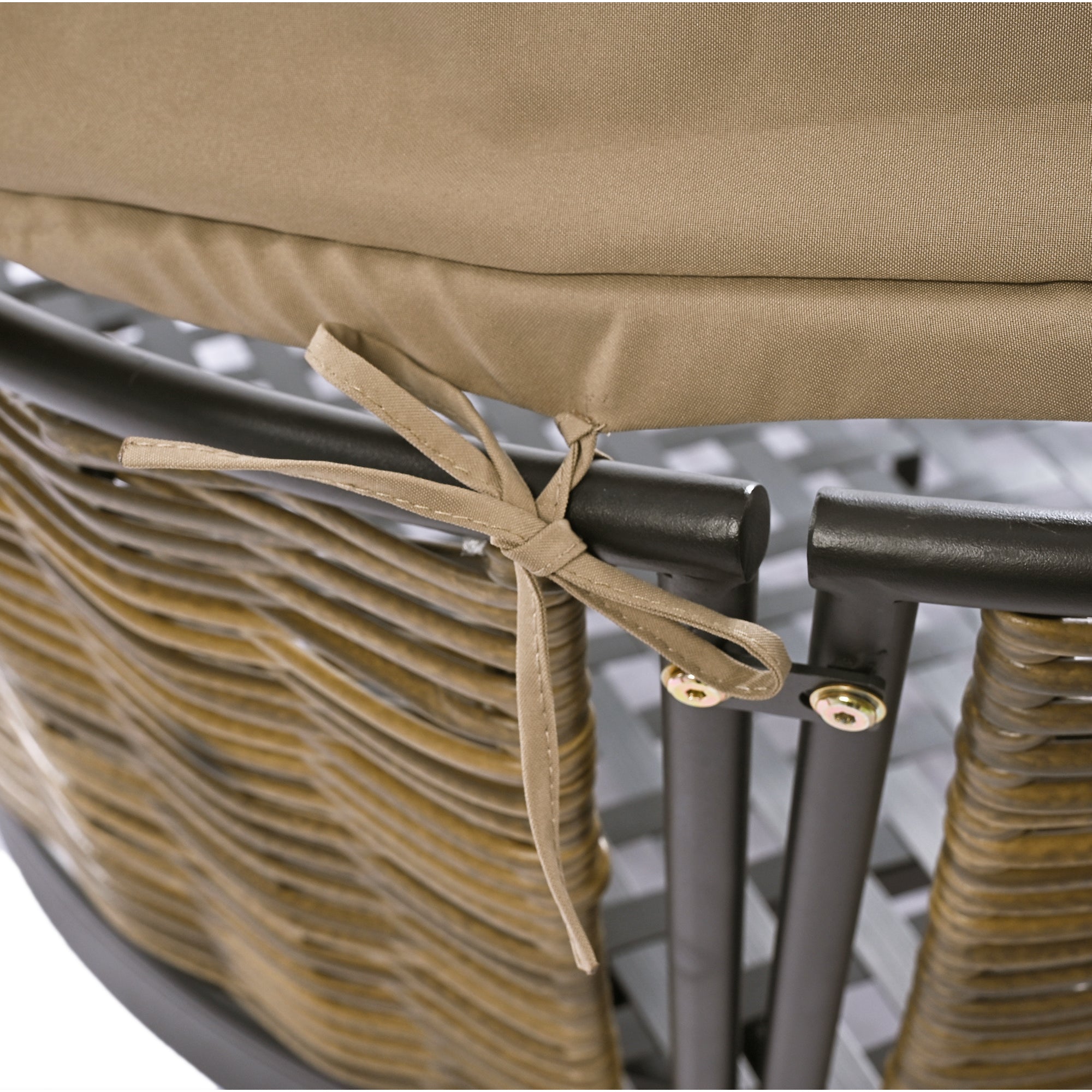 - [Sleek Metal Frame&Rattan Back] This sophisticated patio daybed combines a durable metal frame with intricately woven rattan, offering a blend of contemporary style and weather resistance. Its sleek structure ensures it fits seamlessly into any outdoor space, while the rattan back adds a natural touch that complements the surrounding environment.