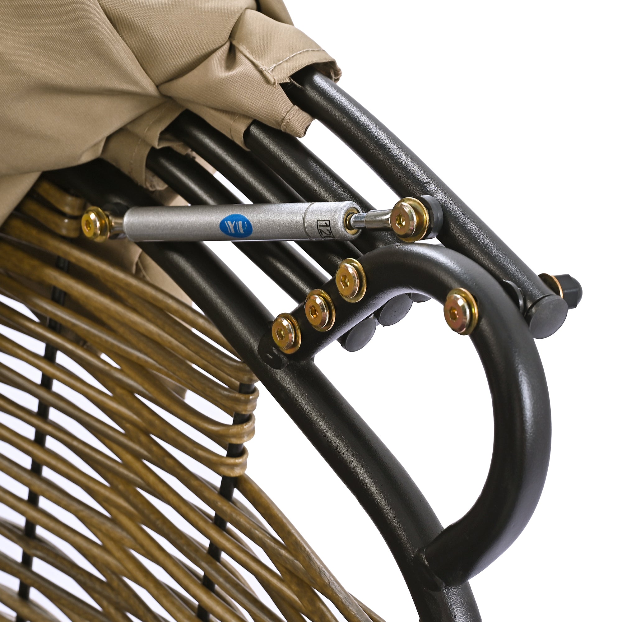 | Highlights | Metal Frame // Rattan Back // Retractable Canopy // Canopy Fixed by Straps // Gaslift Controlled Canopy // 4 Cushions // 4inch Thickness Cushions // Fixed by Magic Tape&Straps // 2 Back Pillows // Extra 2 Colorful Throw Pillows // Washable Covers (With Zipper) // Adjustable Feet // 700lbs Weight Capacity // 2 Colors Available |