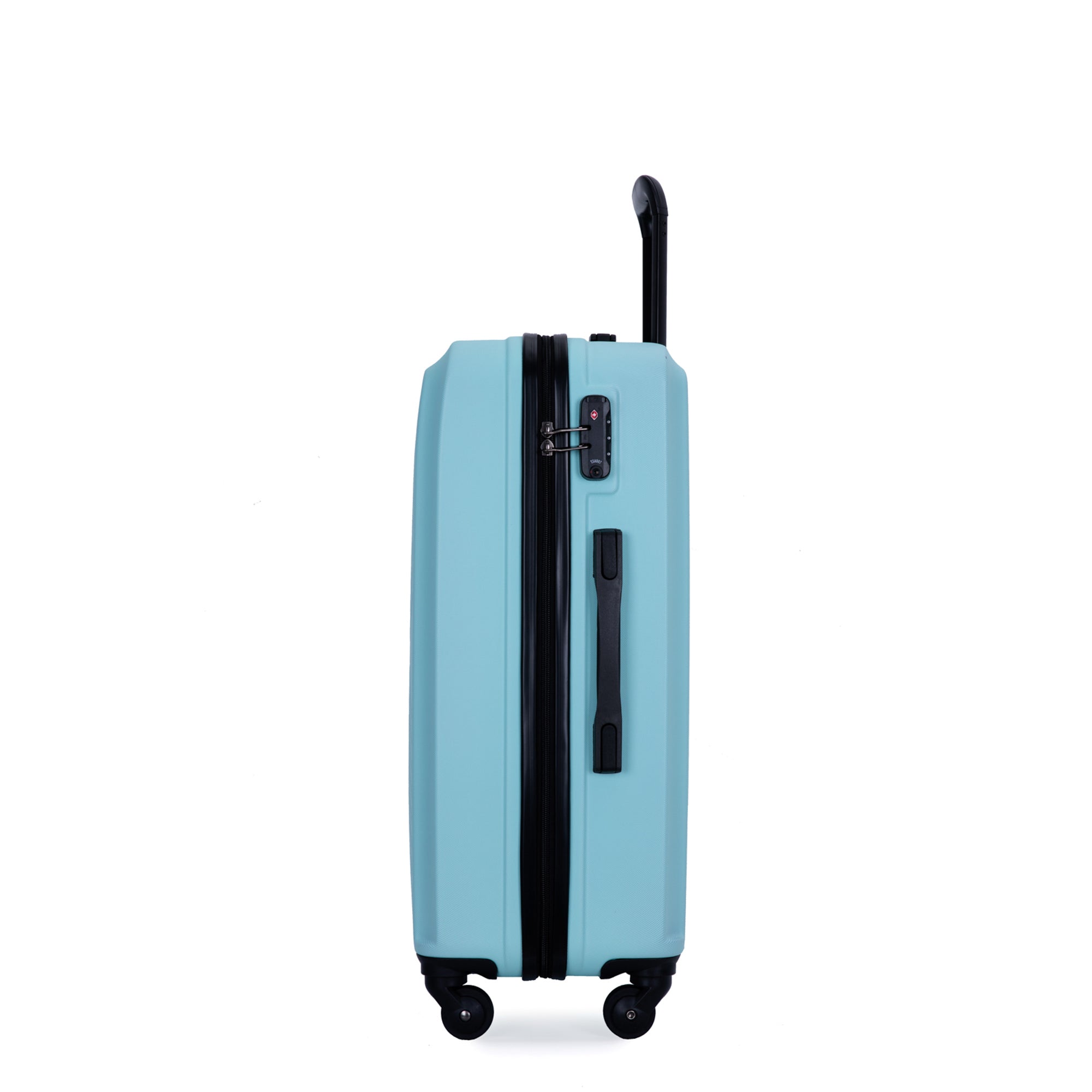 Travel with ease and style using this 3-piece luggage set, crafted from durable ABS material. The set includes 20", 24", and 28" suitcases, each designed to meet various travel needs. The 25" and 29" sizes feature an expandable design, providing up to 20% more packing space when needed. Equipped with 360° double spinner wheels, these suitcases offer smooth and silent maneuverability. The ergonomic 3-step telescoping handle ensures comfortable handling, while the integrated TSA-approved lock provides added security during your travels. Additionally, the 25" and 29" suitcases include two hooks on the side, allowing you to hang accessories such as a backpack or hat, reducing fatigue during your journey.