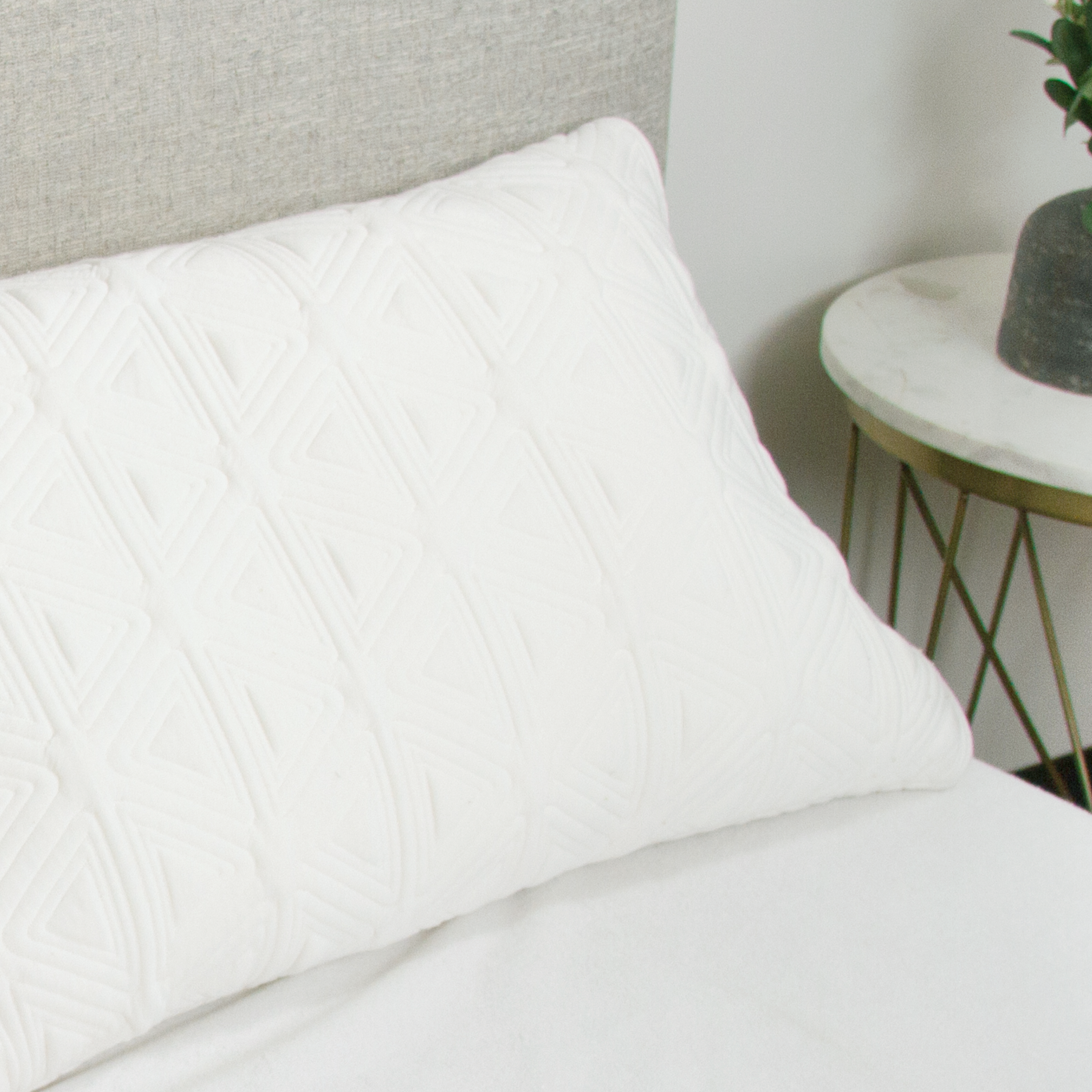 • Generous loft for support – tall, plush cushion offers excellent support and helps maintain neck alignment overnight.