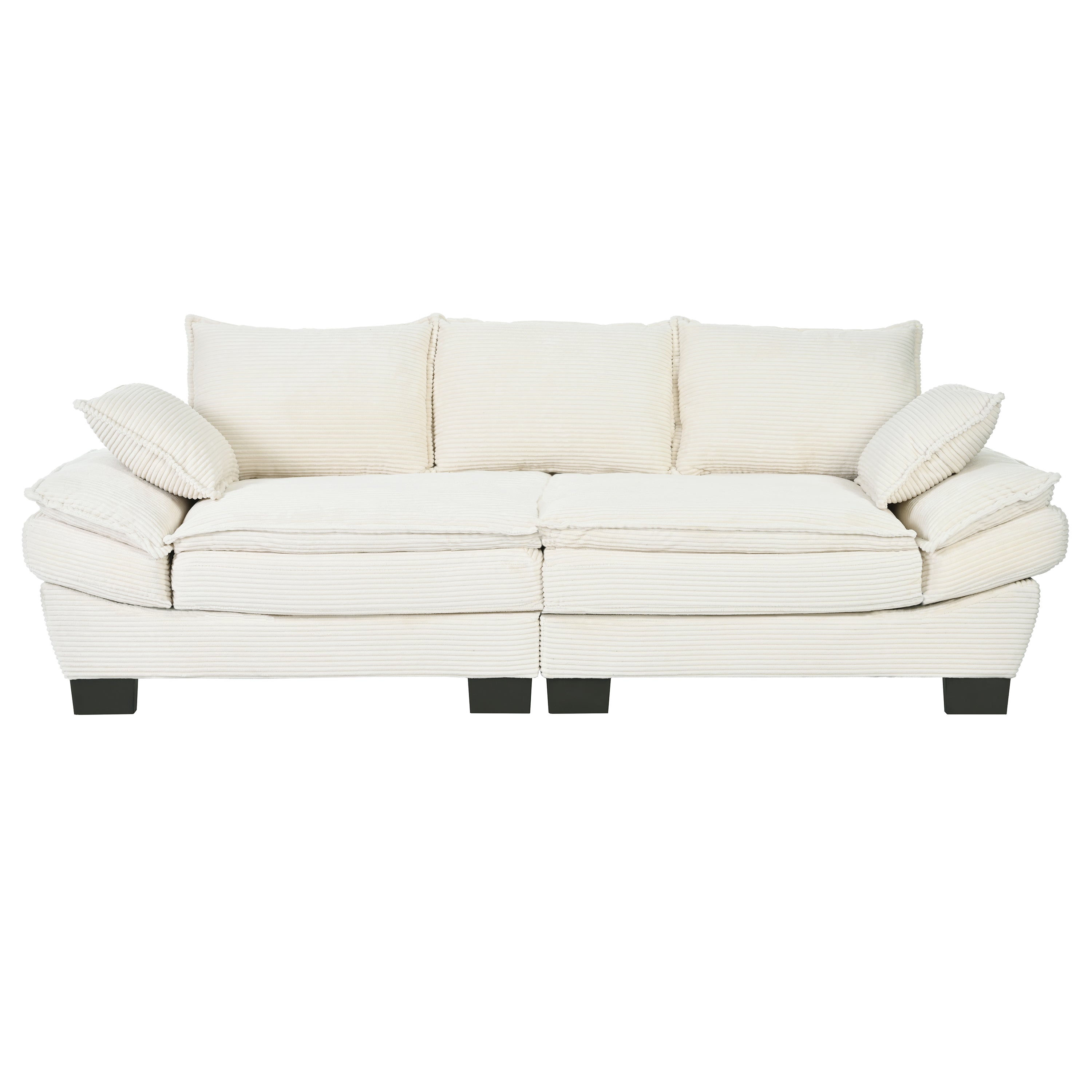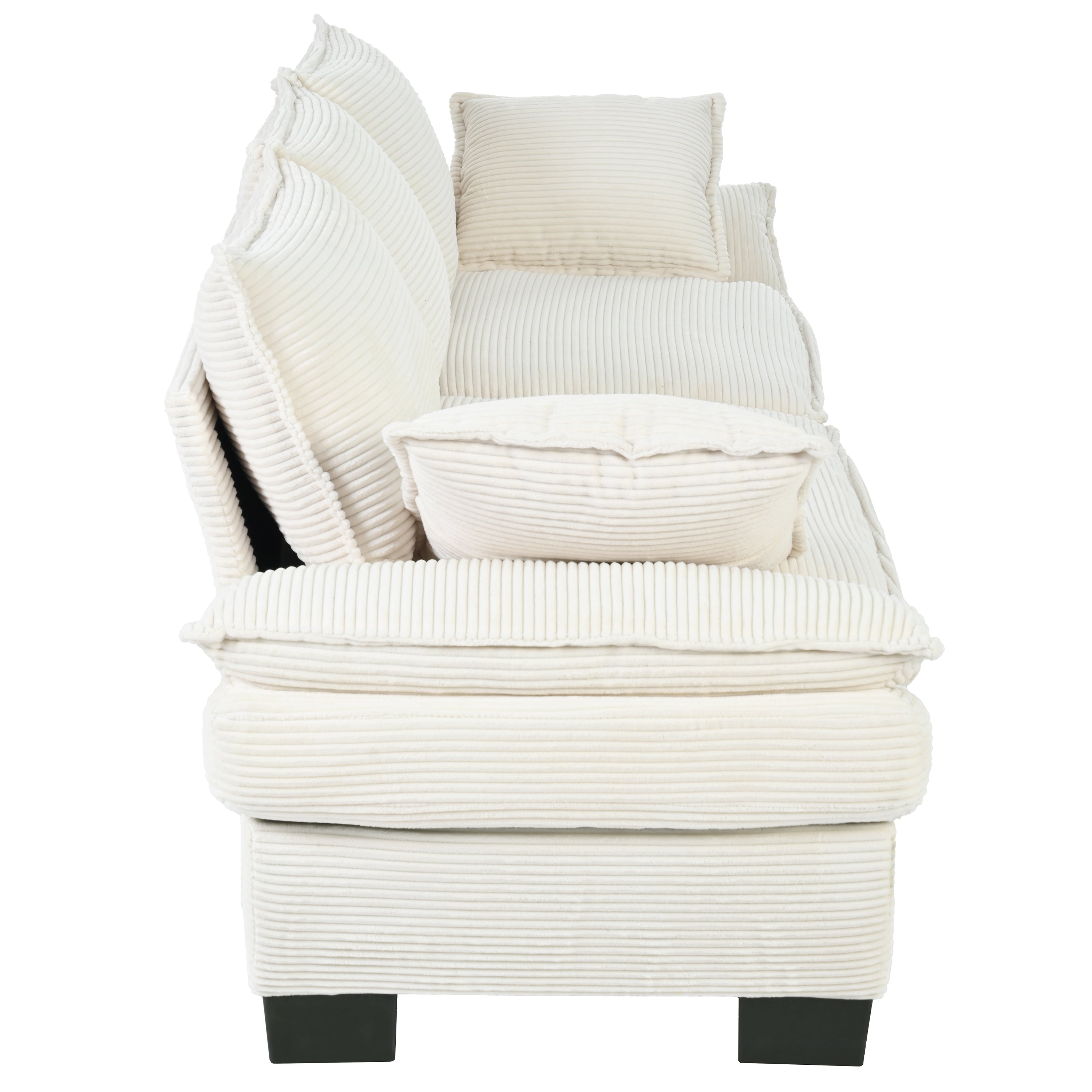 U-Style 85.4" Modern Curved Sofa, Back Upholstered Couch with 2 Decorative Throw Pillows, Corduroy Fabric Couch for Living Room, Bedroom , Apartment