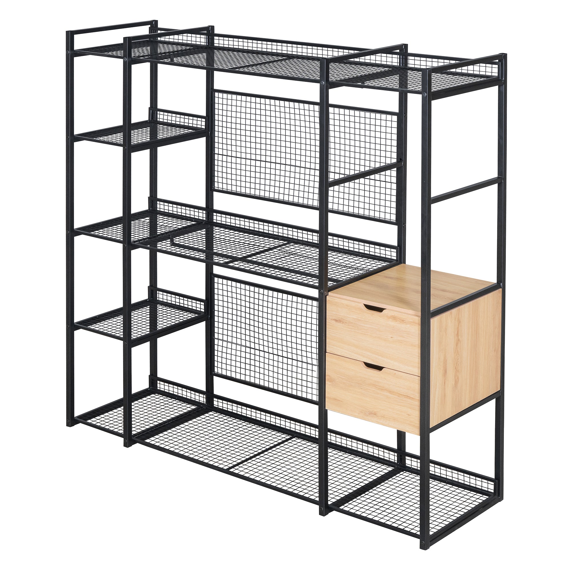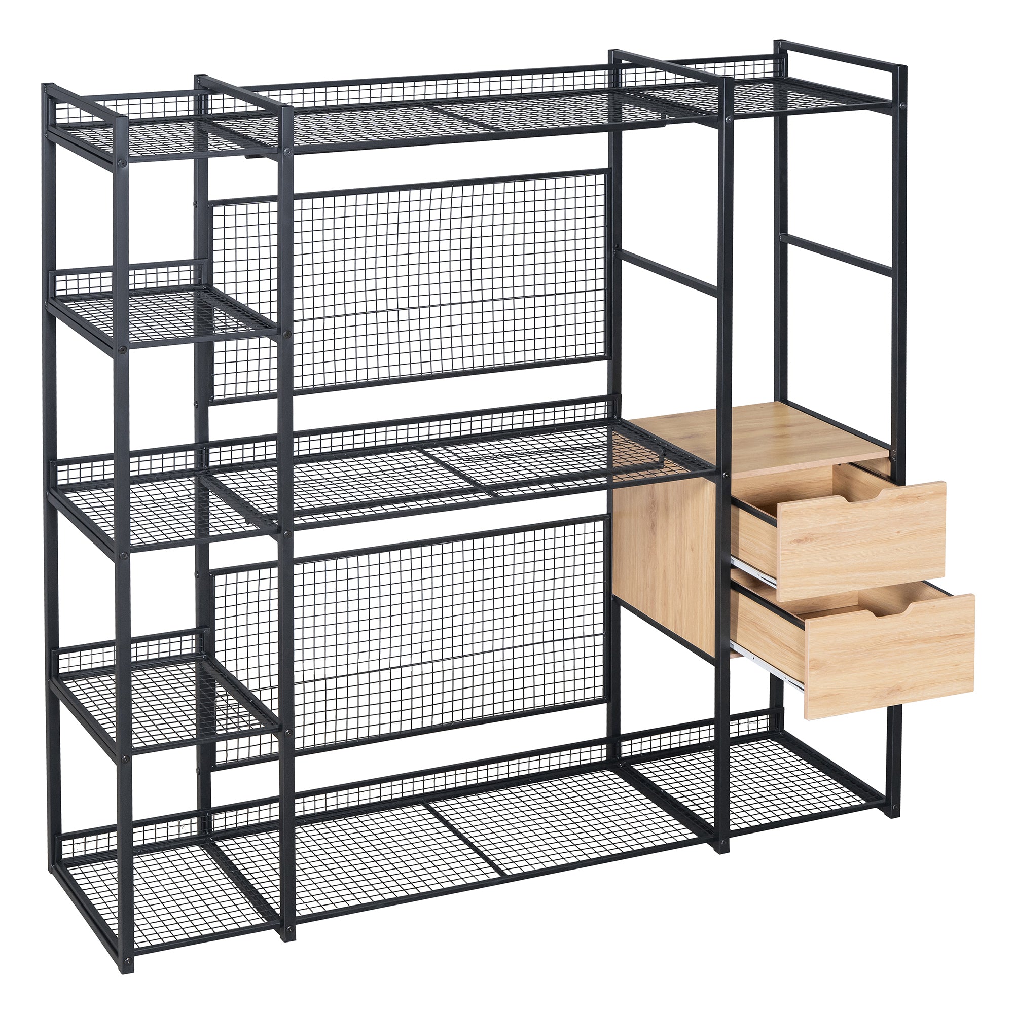 - [Maximized space] The wardrobe maximize your closet space with this open-style clothing rack. The hanging rails and metal shelves provide ample room for clothes and accessories.
