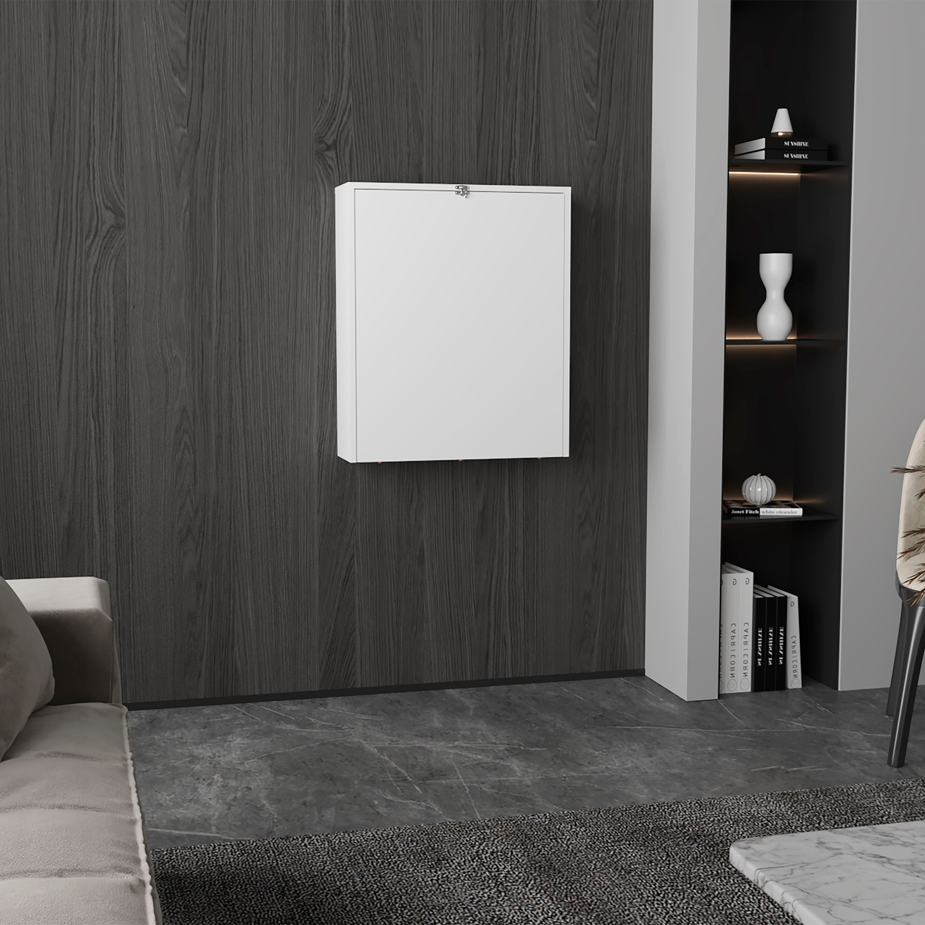 Kaplar 33' Wide x 23' Deep folding Table with Four Shelves, Floating Table, Retractable Table, Floating Desk, Ironing Table White