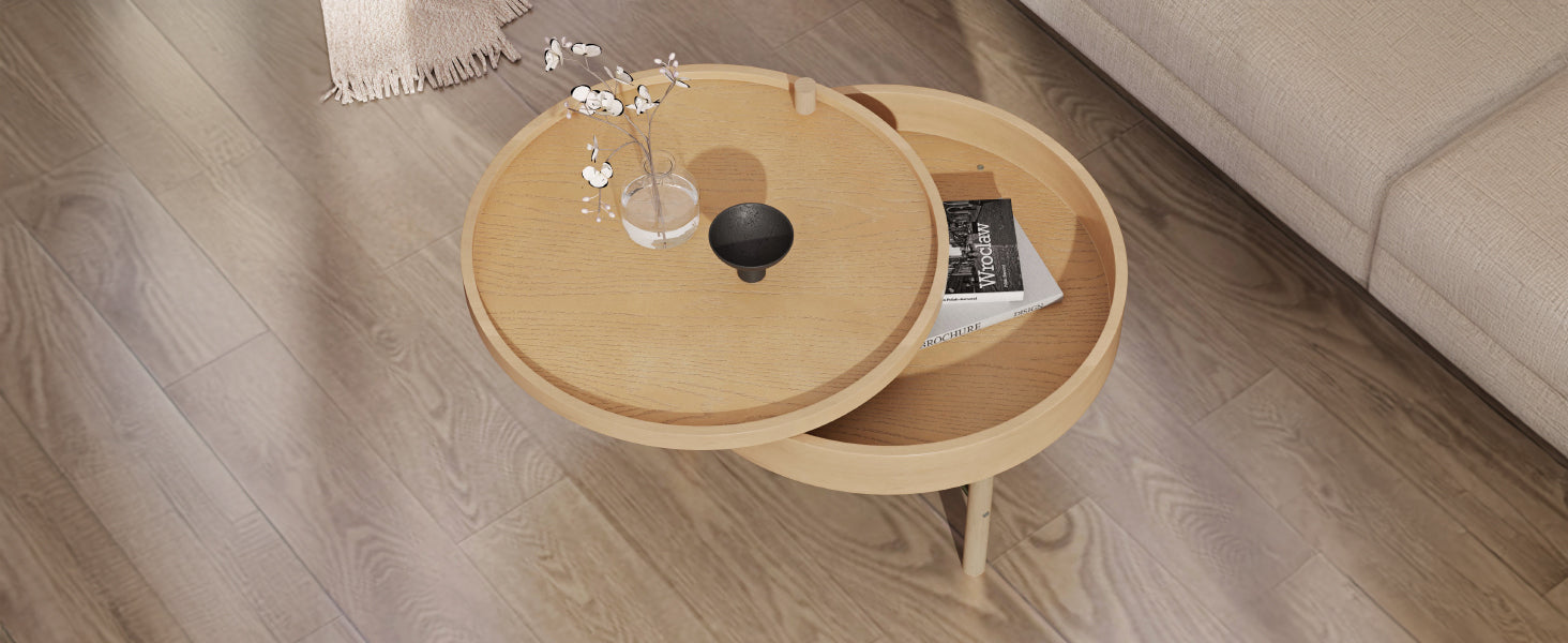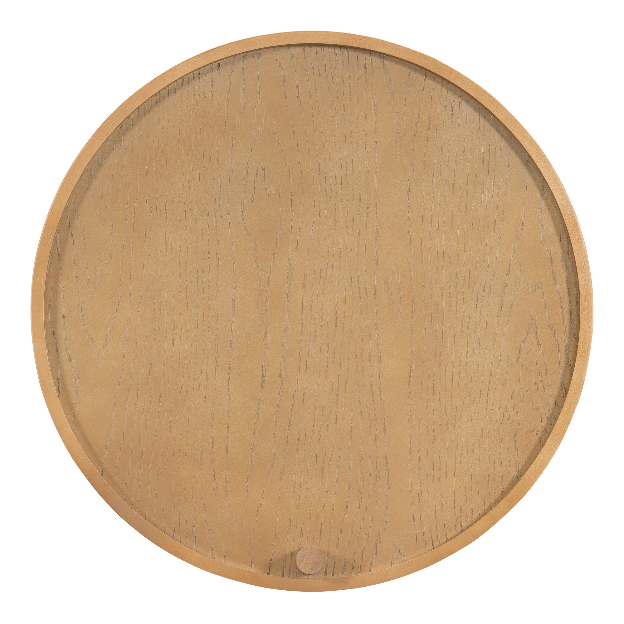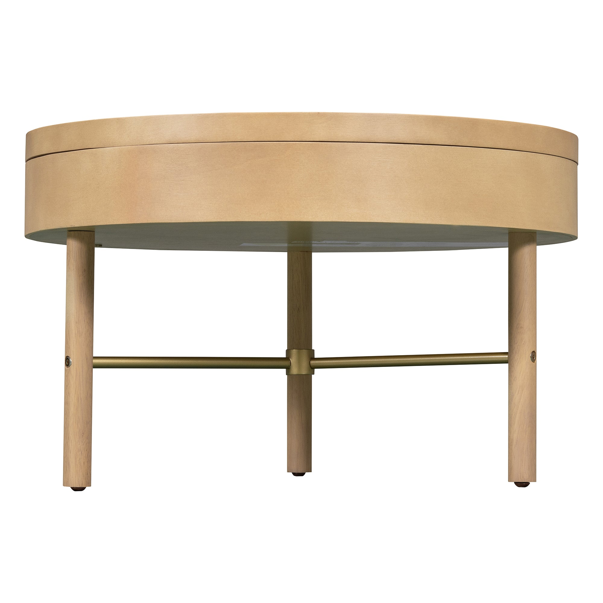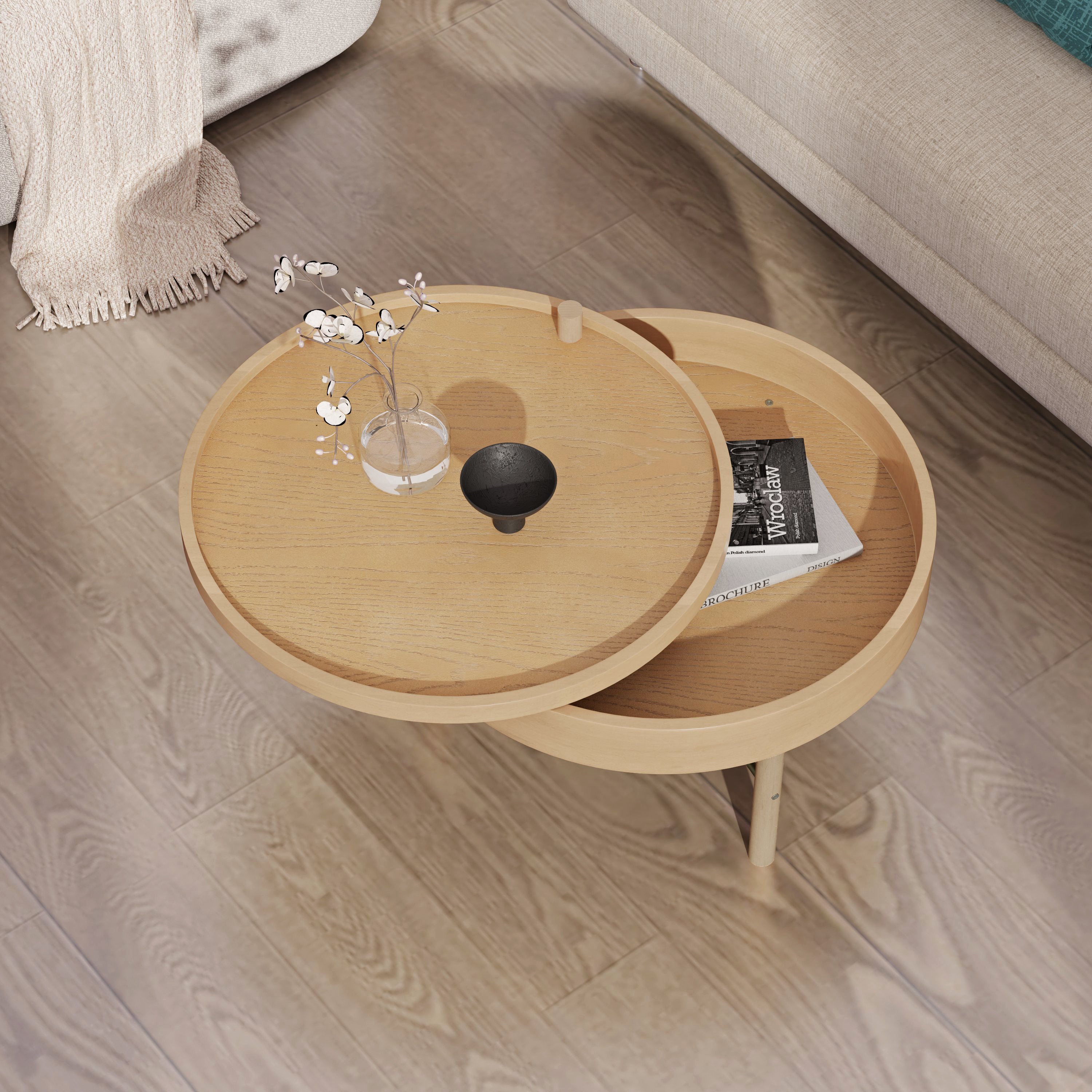 Modern Round Wood Rotating Tray Coffee Table with Storage & Metal Legs in Natural