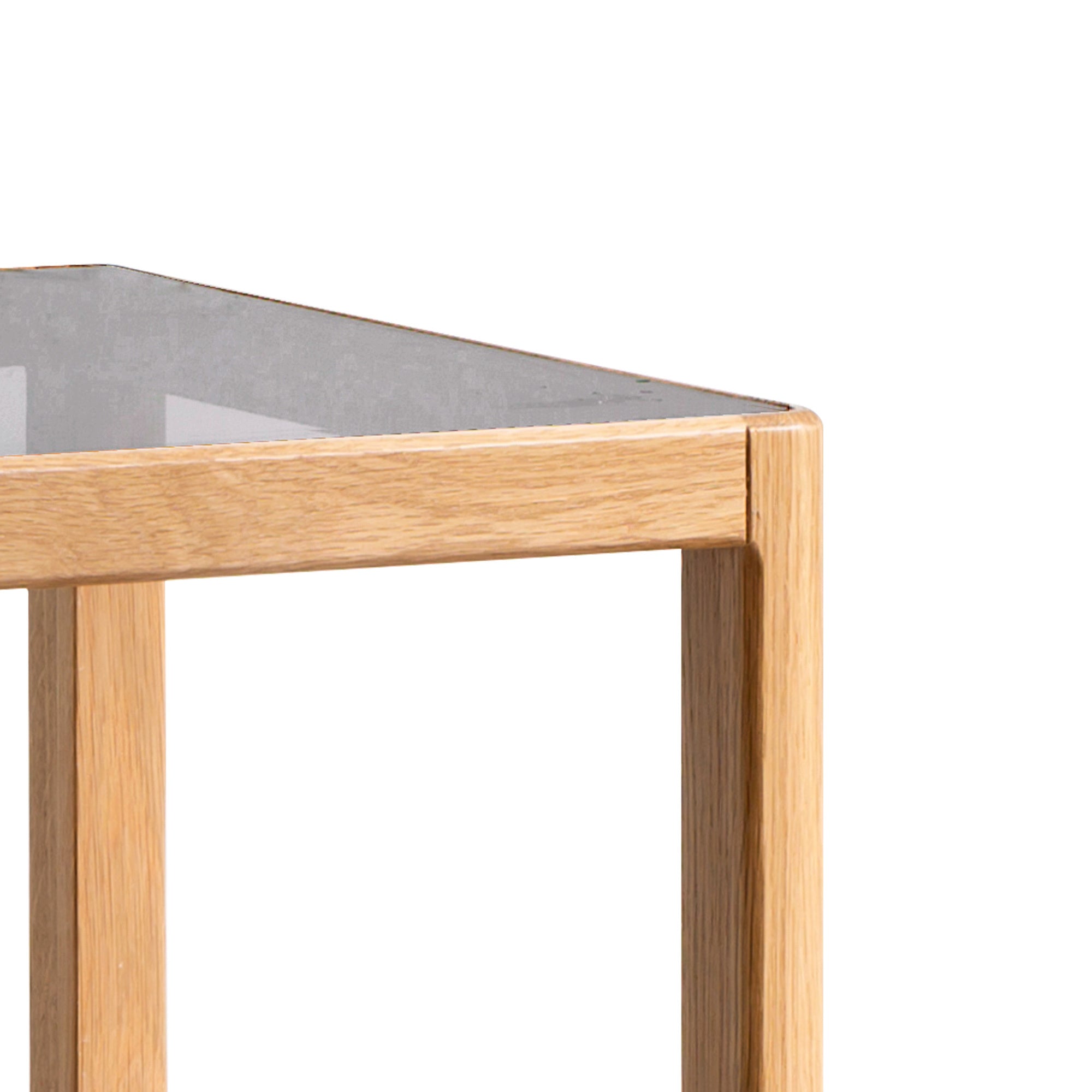 Natural Oak Wood End Table with Tempered Glass for Living Room, Dinning Room, or Bedroom