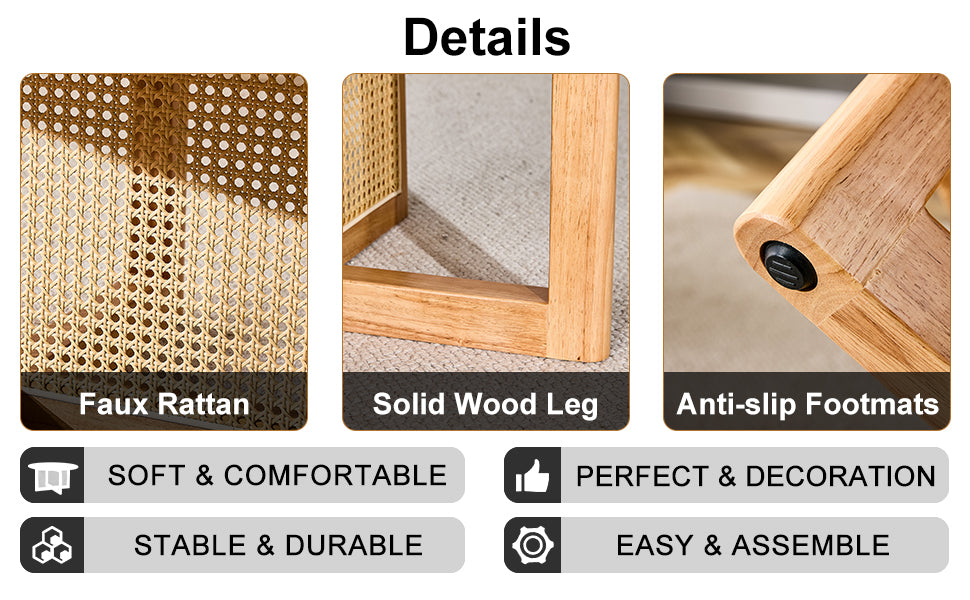 • On our solid wood+rattan coffee table, we integrate natural aesthetics and functional design to redefine relaxation.