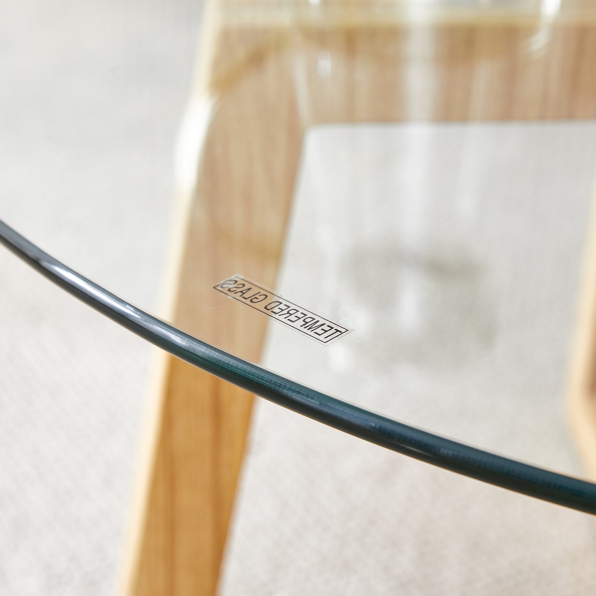 Modern practical circular coffee tables. Made of transparent tempered glass tabletop and wood colored MDF material. Suitable for living rooms and bedrooms.31.5"*31.5"*17.7"
