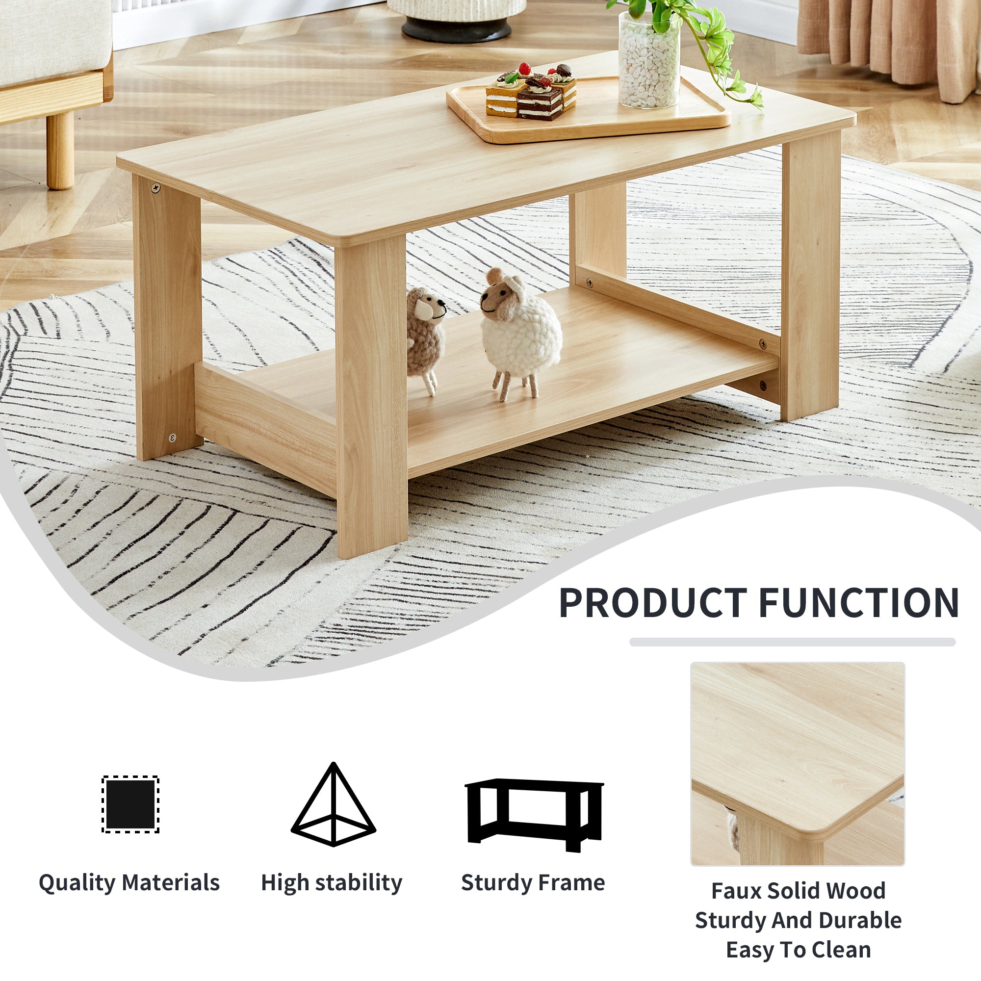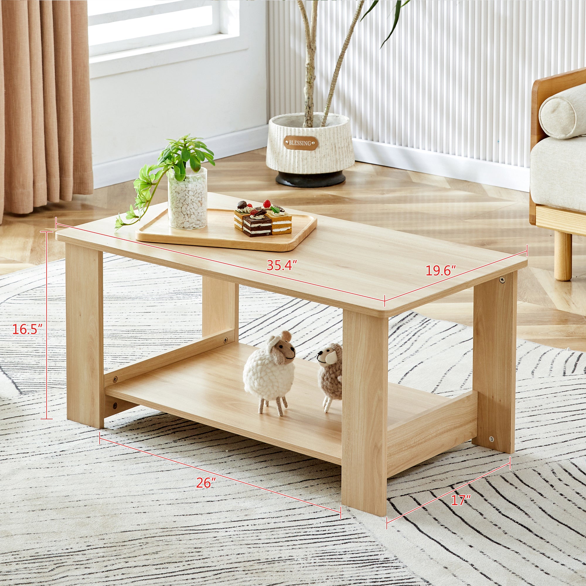 Modern minimalist log colored double layered rectangular coffee table, tea table.MDF material is more durable,Suitable for living room, bedroom, and study room.35.4"*19.6"*16.5" CT-16