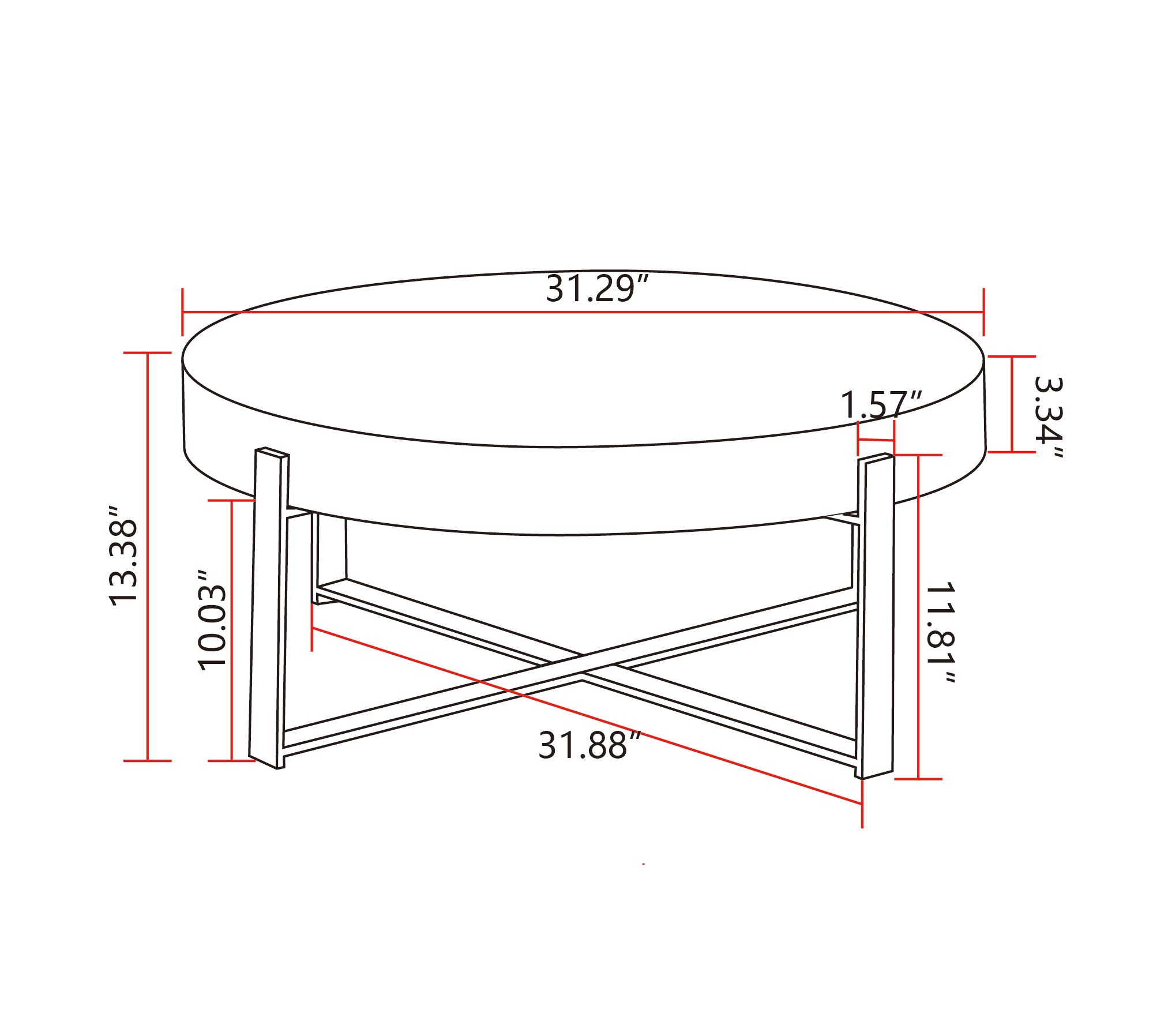 • High-quality materials: This round coffee table is made of high-quality fir wood on the top and sides, while the back of the table is made of high-quality MDF.The round coffee table has a solid metal iron frame, which is durable and solid, and cross legs provide stability.