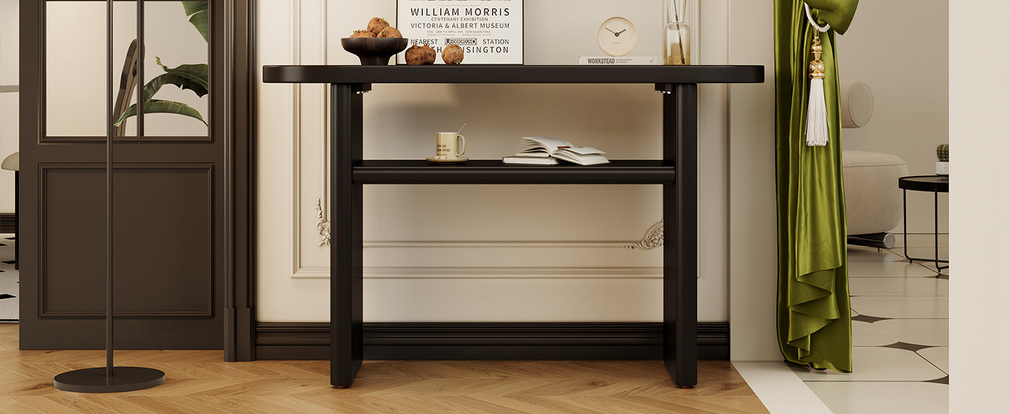 TREXM Elegant Minimalist Console Table with Rounded Edges and Sturdy Shelf Design for Entryway, Living Room(Black)