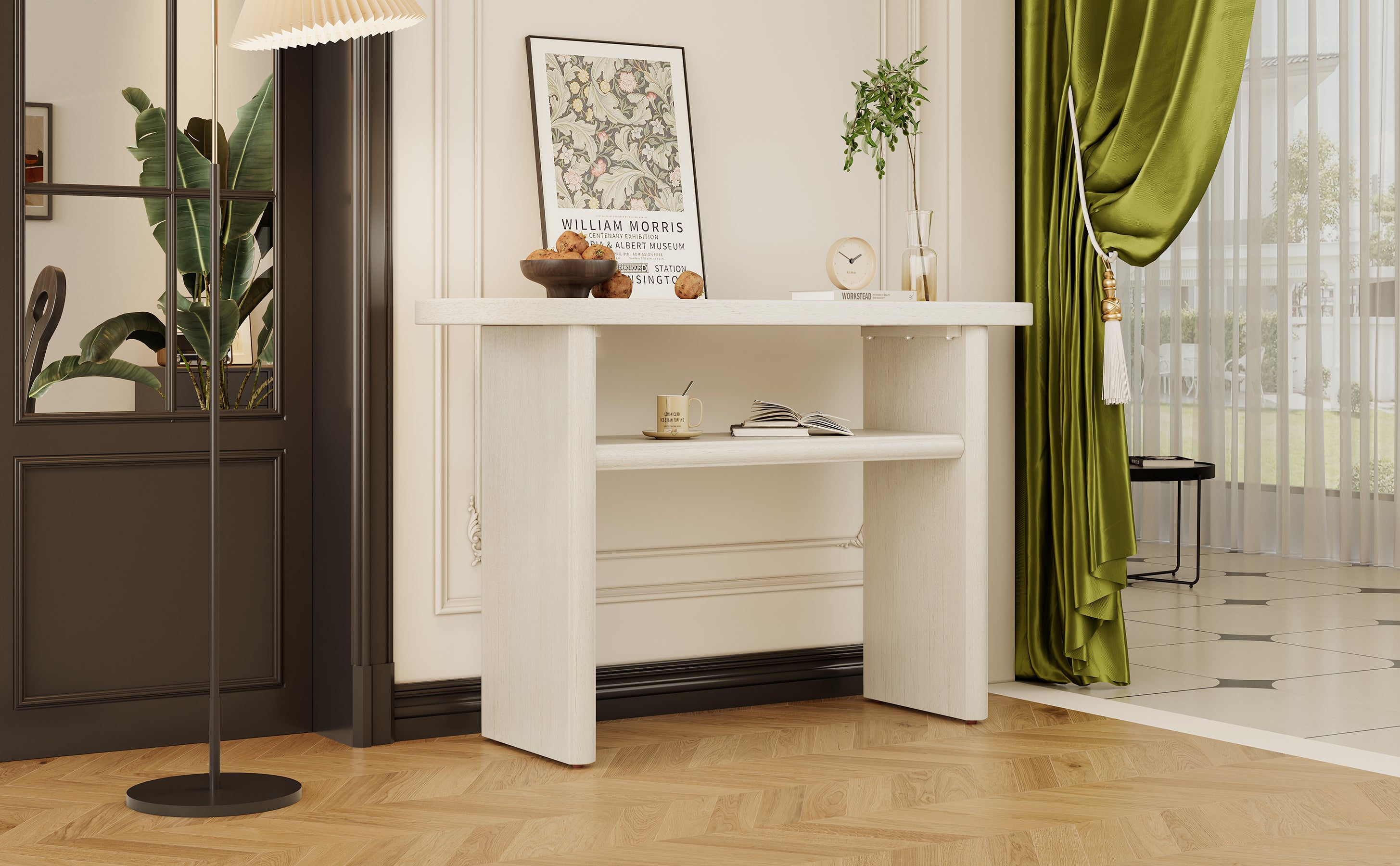 • Multifunctional Console Table: This console table is a testament to fine craftsmanship, blending quality materials with meticulous attention to detail. Beyond its aesthetic appeal, the console table is highly functional, with a sturdy top and shelf providing ample space for storage and display. Durable and stylish, it's the perfect piece for those who value both form and function in their home decor.