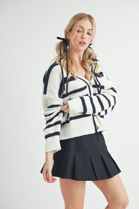 Aemi + Co Striped V-Neck Button Down Cardigan