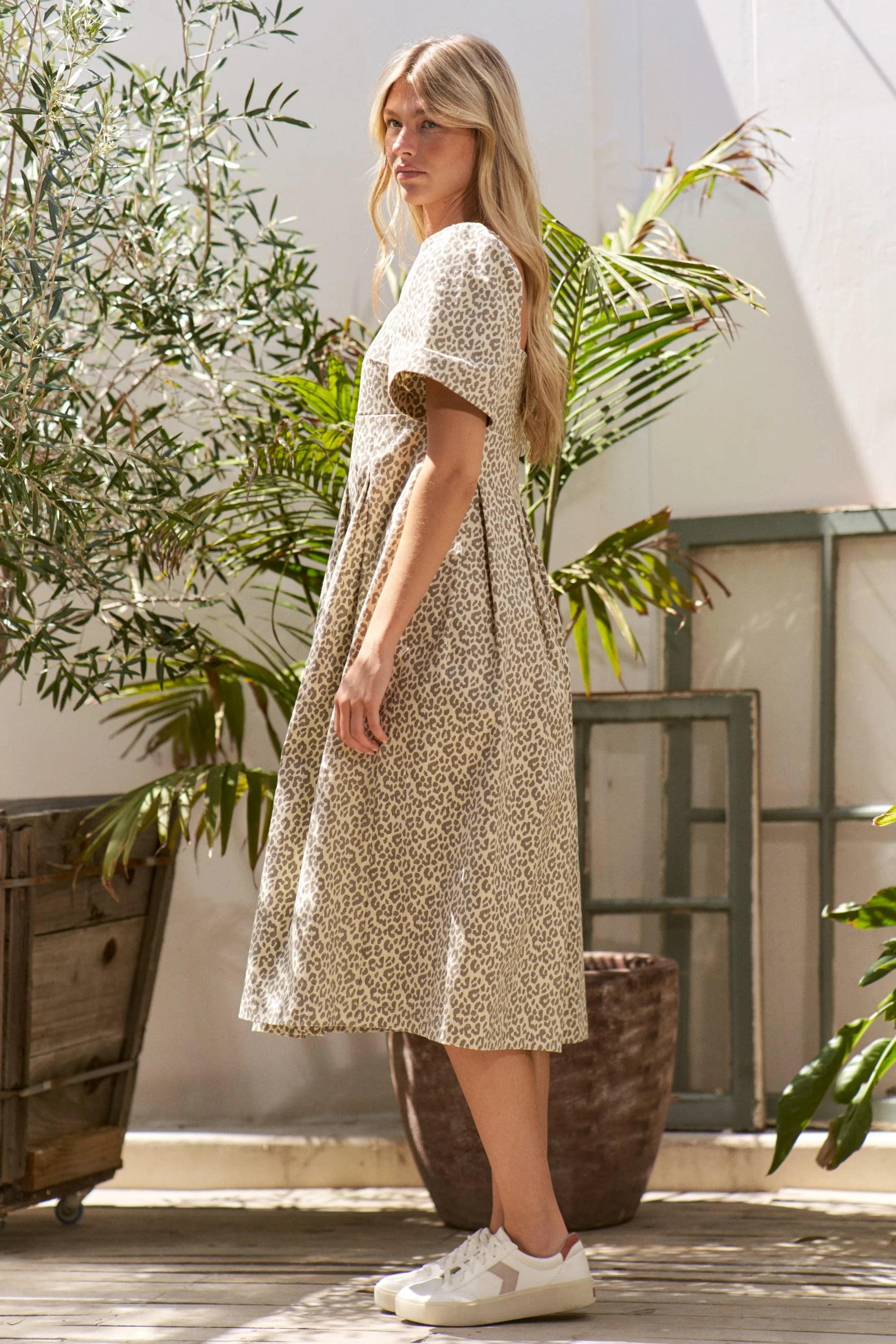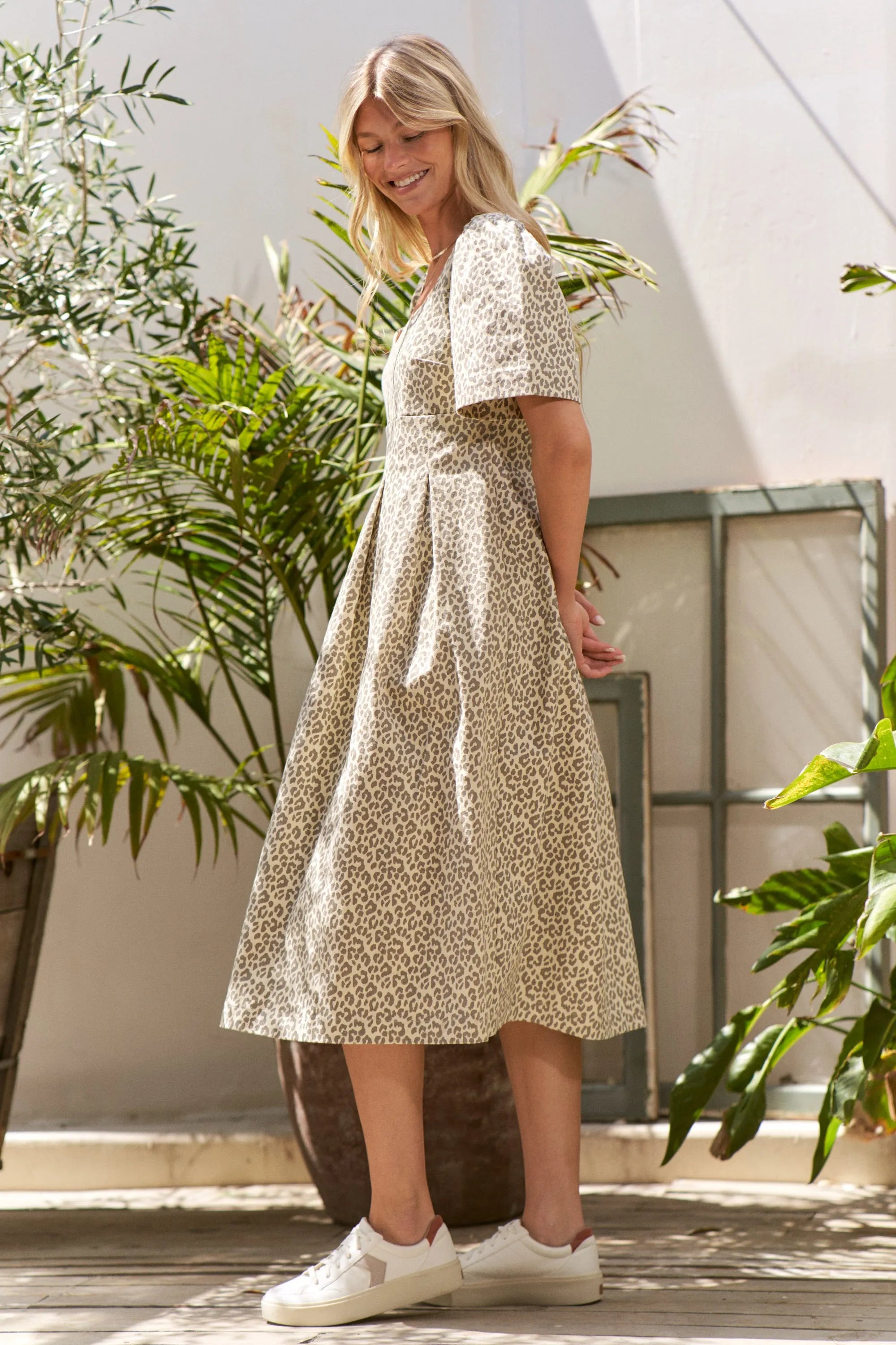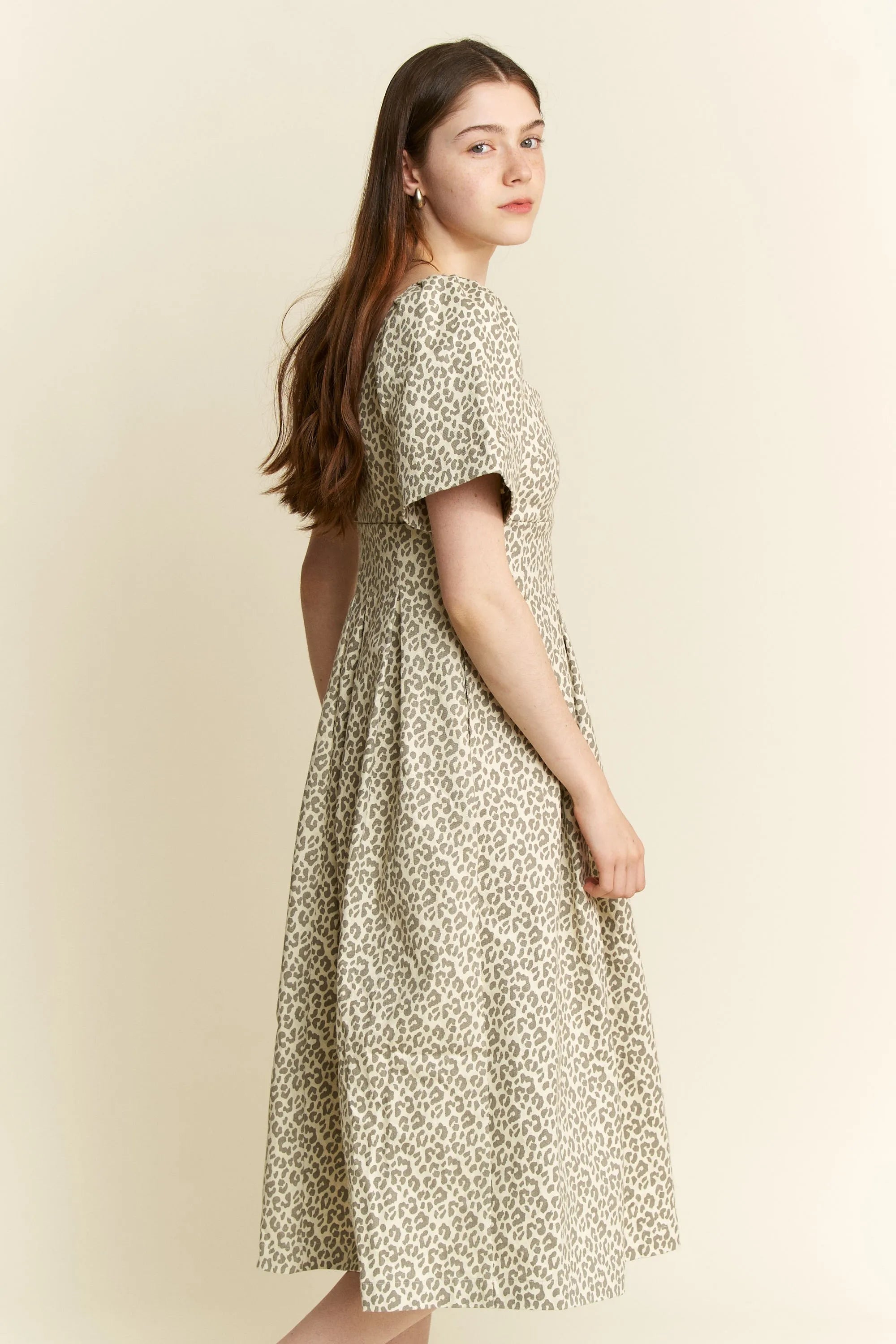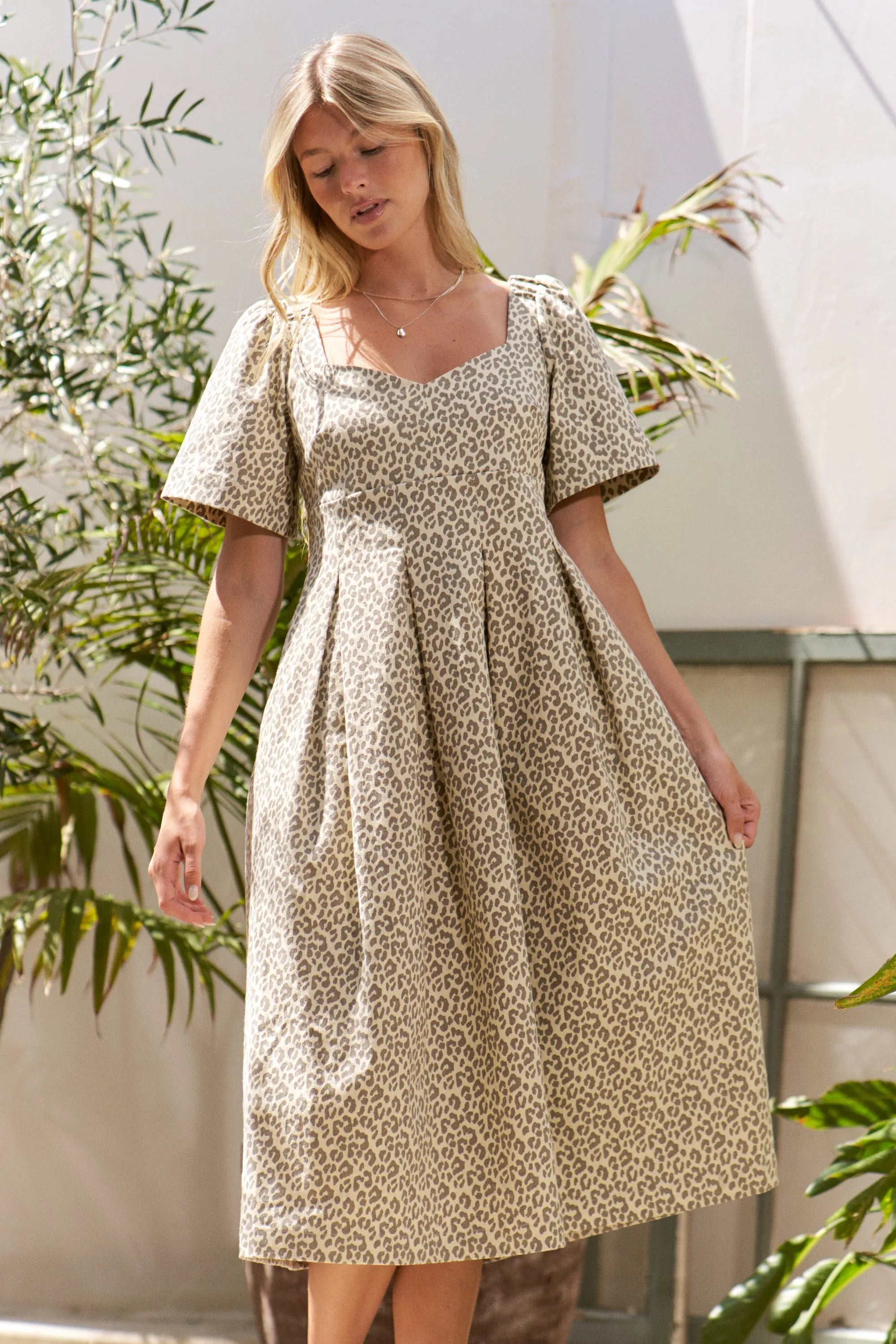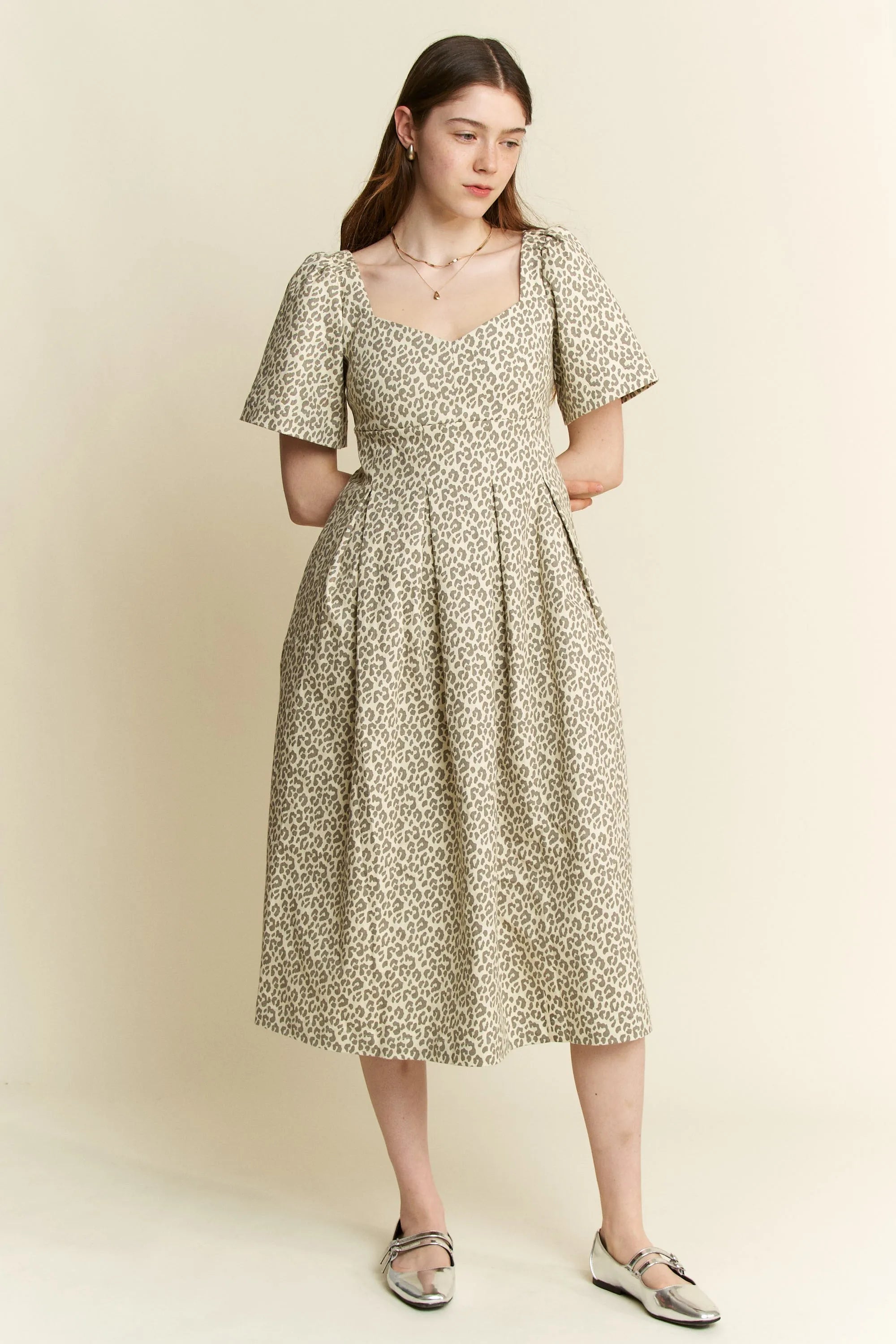 Jade By Jane Leopard Print Bell Sleeve Midi Dress - 97 % cotton