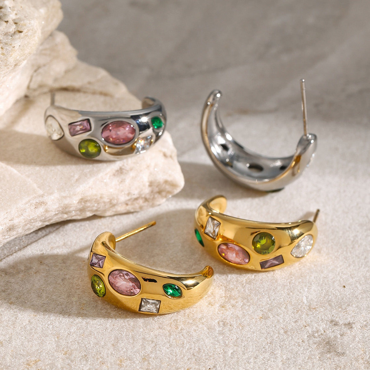 Stainless Steel Inlaid Geometric Zircon Earrings